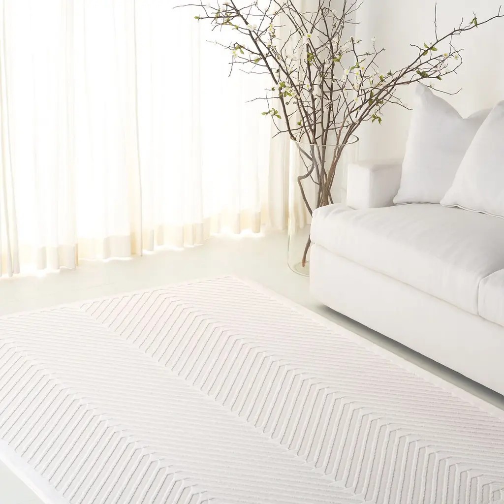Elevate your living space with the sleek and modern design of our Ivory Medium Rectangle Area Rug, sizing up at an ample 5 feet by 7 feet. Crafted with meticulous attention to detail, this rug features a striking geometric pattern that brings a contemporary edge to any room. The harmonious ivory color palette ensures it complements a wide range of interior styles. Constructed with a power-loomed technique, this rug showcases exceptional craftsmanship and durability. The 1/2-inch pile height provides a plush underfoot experience, while the resilient polyester fibers guarantee easy maintenance and long-lasting beauty. Proudly made in Turkey, this rug is not only a testament to superior construction but also reflects the rich heritage of one of the world's most renowned rug-making regions. Whether it's anchoring your living room furniture or adding a touch of sophistication to your bedroom, this modern-style area rug is the perfect blend of function and fashion.
