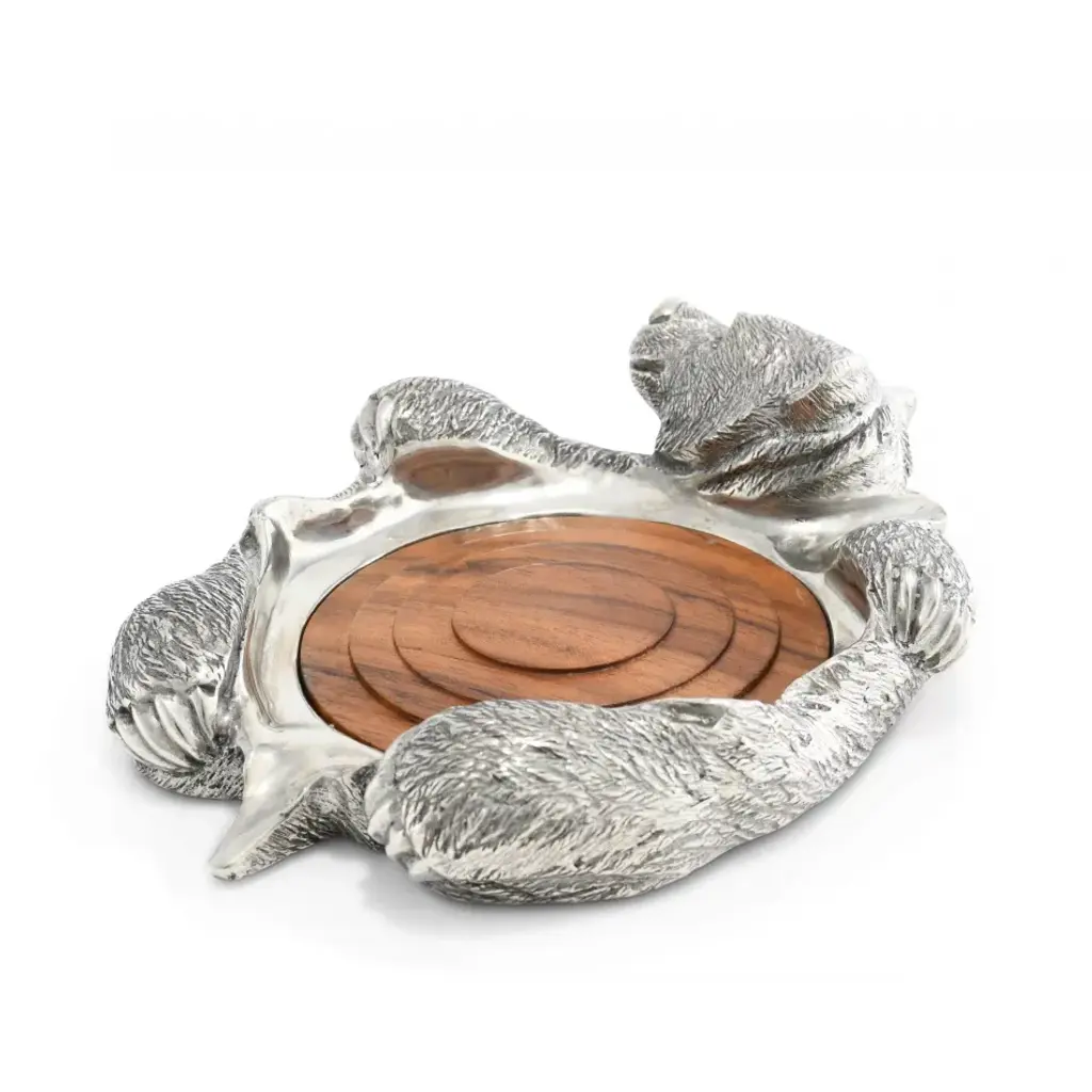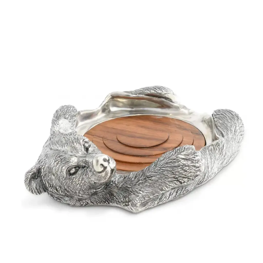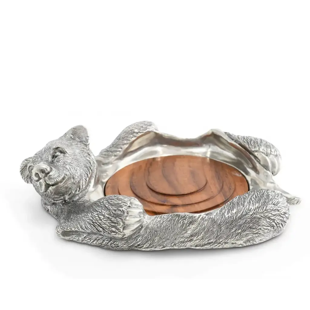 Woodland Creatures Pewter Bear Rug Wine Coaster