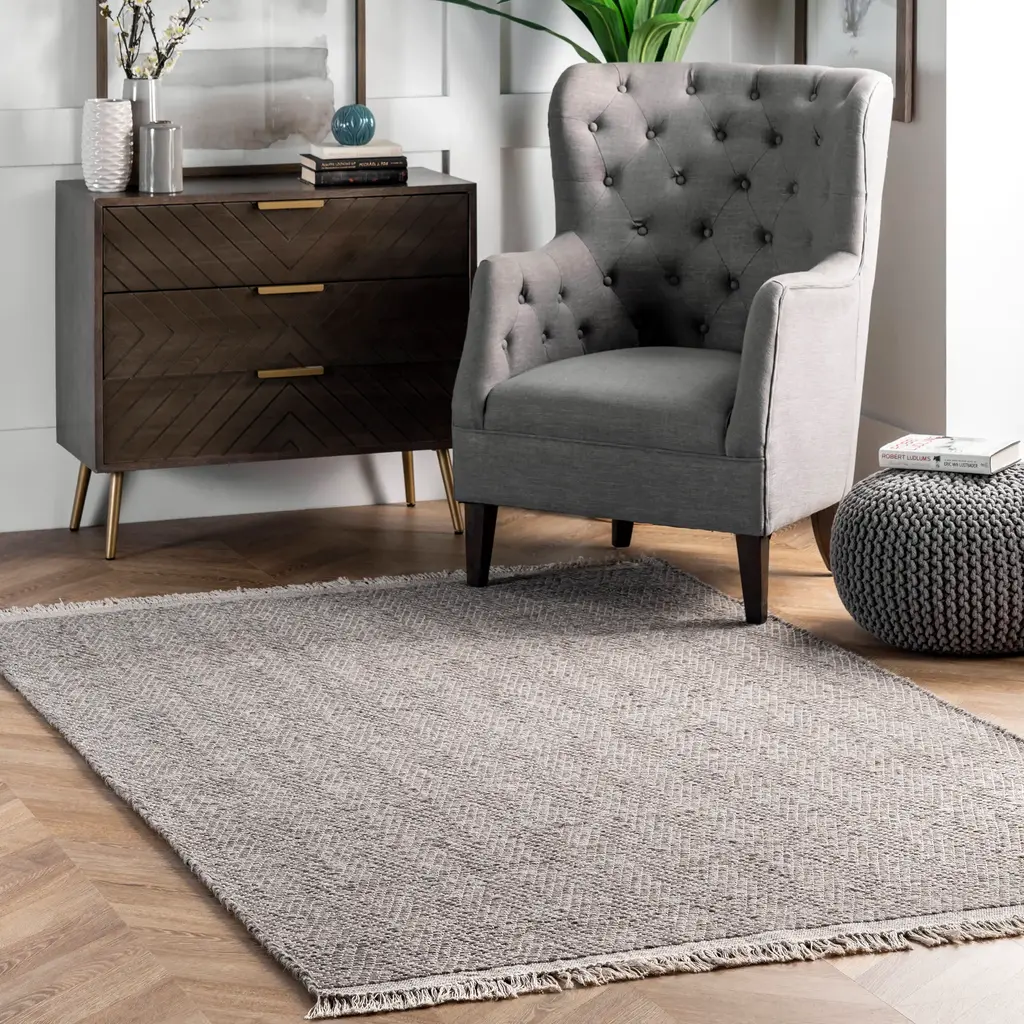 Wool Chevrons Tassel Rug | Grey - 3' X 5'