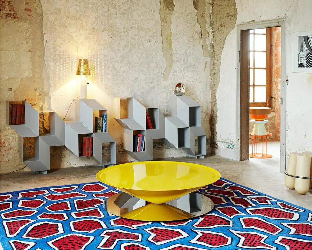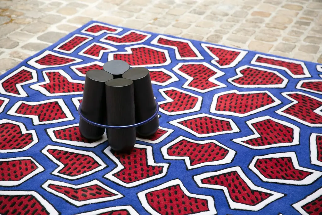Wool "France" rug, Natalie de PasquierDimensions: 270 W x 380 L cmMaterials: 100% pure wool, hand knotted100 000 knots / sqmOther color combinations and sizes are available.France is a hyper graphic rug, typical of Nathalie du Pasquier’s iconic designs from the Memphis movement of which she was the graphic designer in the 1980s. Nathalie used the colors of the French flag for her first collaboration with a French brand. France is a comfy graphic puzzle made of the best quality wool.Nathalie du Pasquier was born in Bordeaux (France) in 1957, she has lived in Milano since 1979. Until 1986, she worked as a designer and was a founder member of Memphis. She designed numerous "decorated surfaces": textiles, carpets, plastic laminates, and some furniture and objects. In 1987, painting became her main activity.