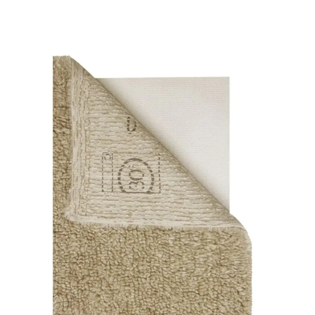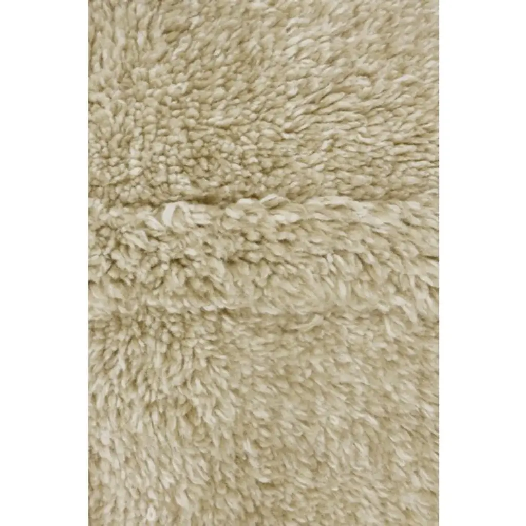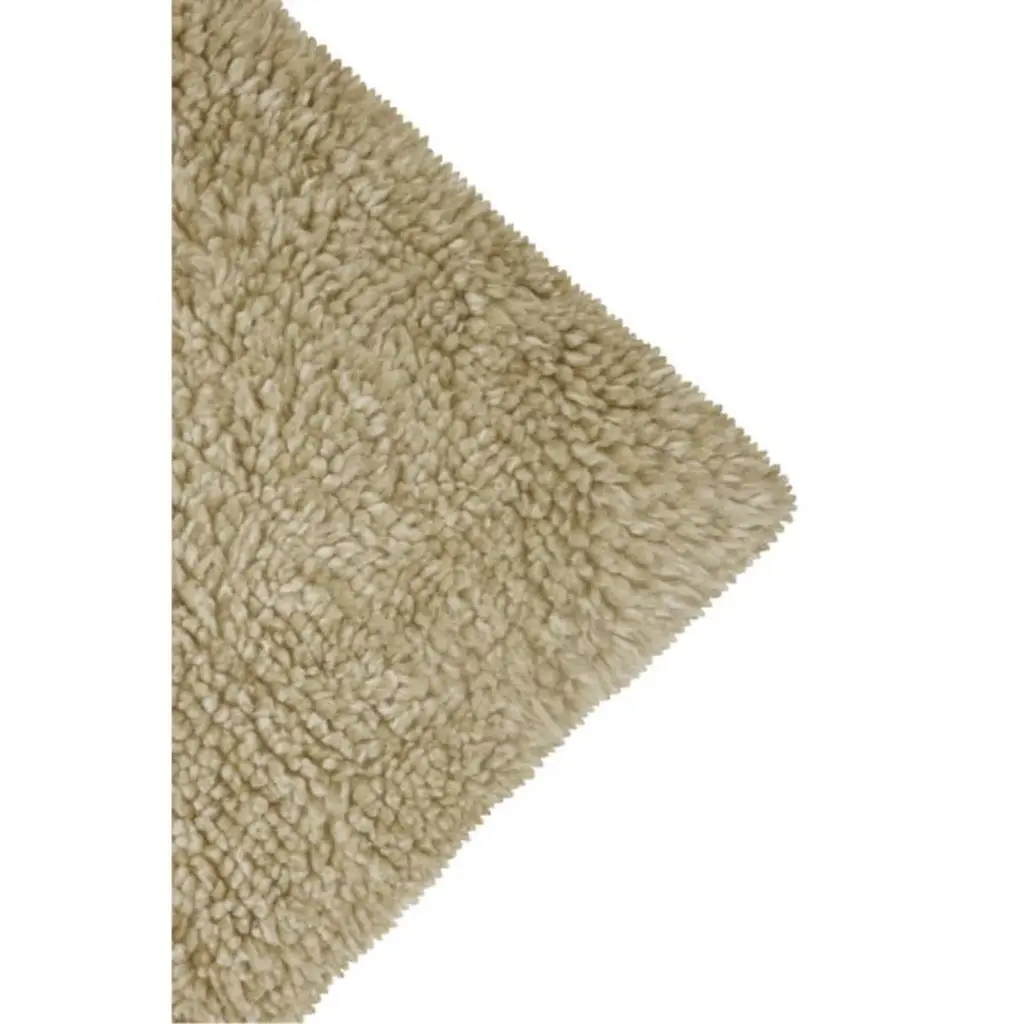 Add a cozy touch to your little one's nursery or playroom with this sweet + washable wool rug. Its soft long pile + recycled cotton canvas base make it both comfortable and durable. The rounded edges and imitate the silhouette of sheep hide, finished in white.