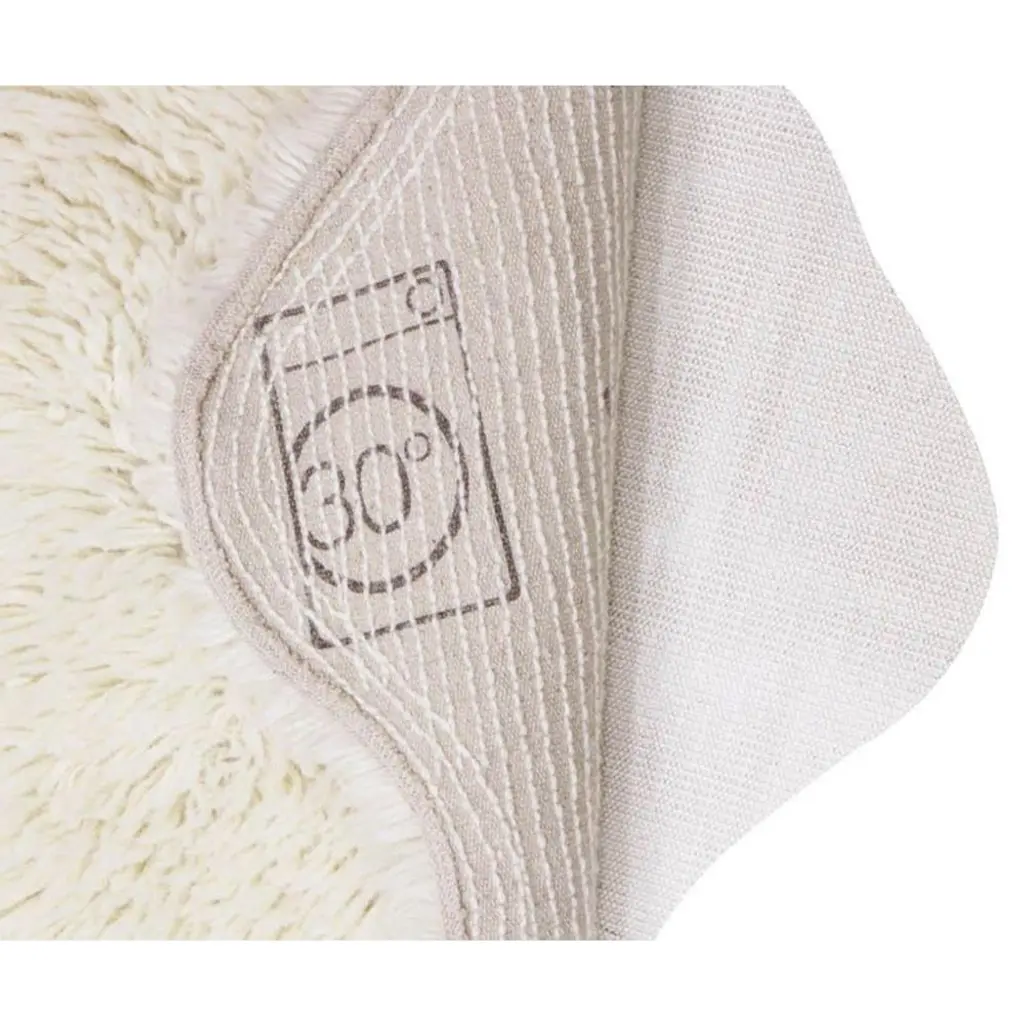With a crisp white hue and plush texture, the 2’5”x3’7” Woolly rug invites you to curl up and relax. Crafted from undyed wool with cotton canvas backing, this eco-friendly rug is machine washable and easy to style in any room in your home.