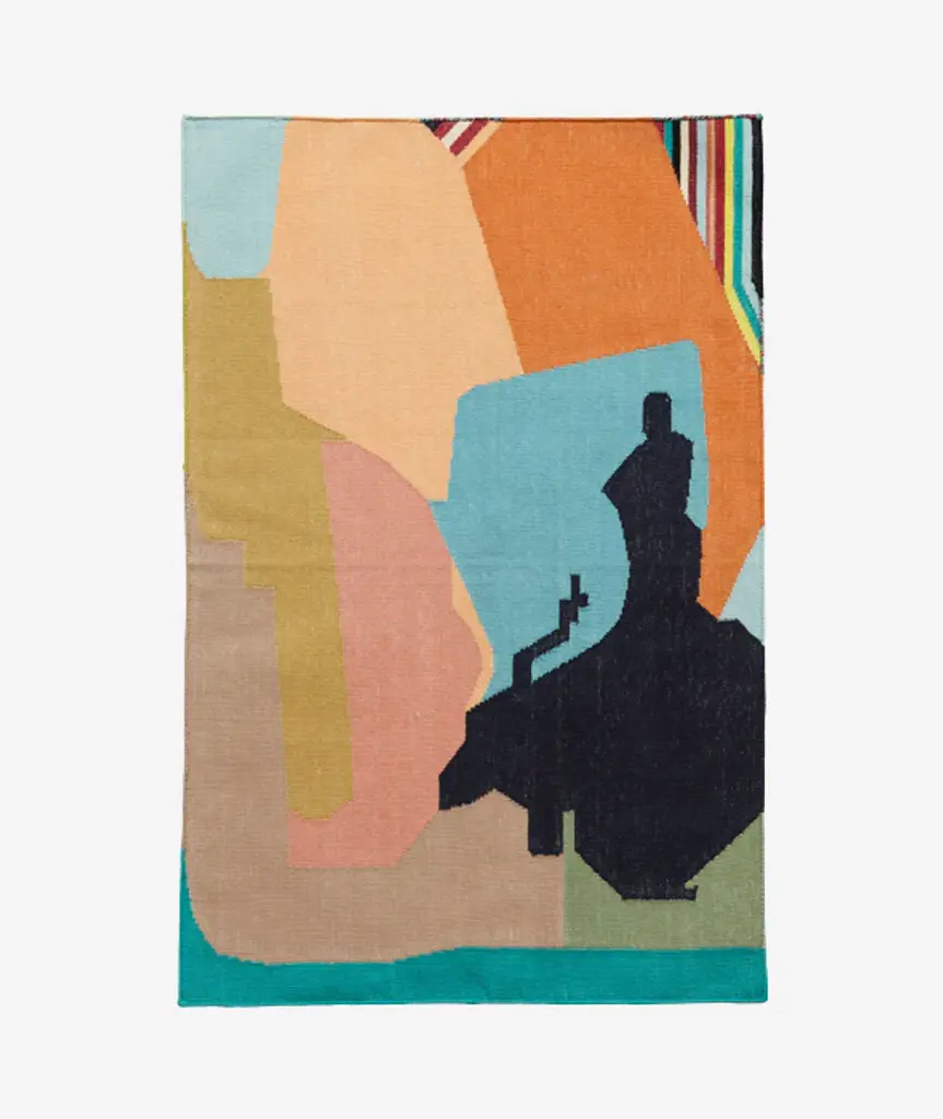 This contemporary World Map Blue rug displays a graphic mercator projection motif in tones of blue and cream.