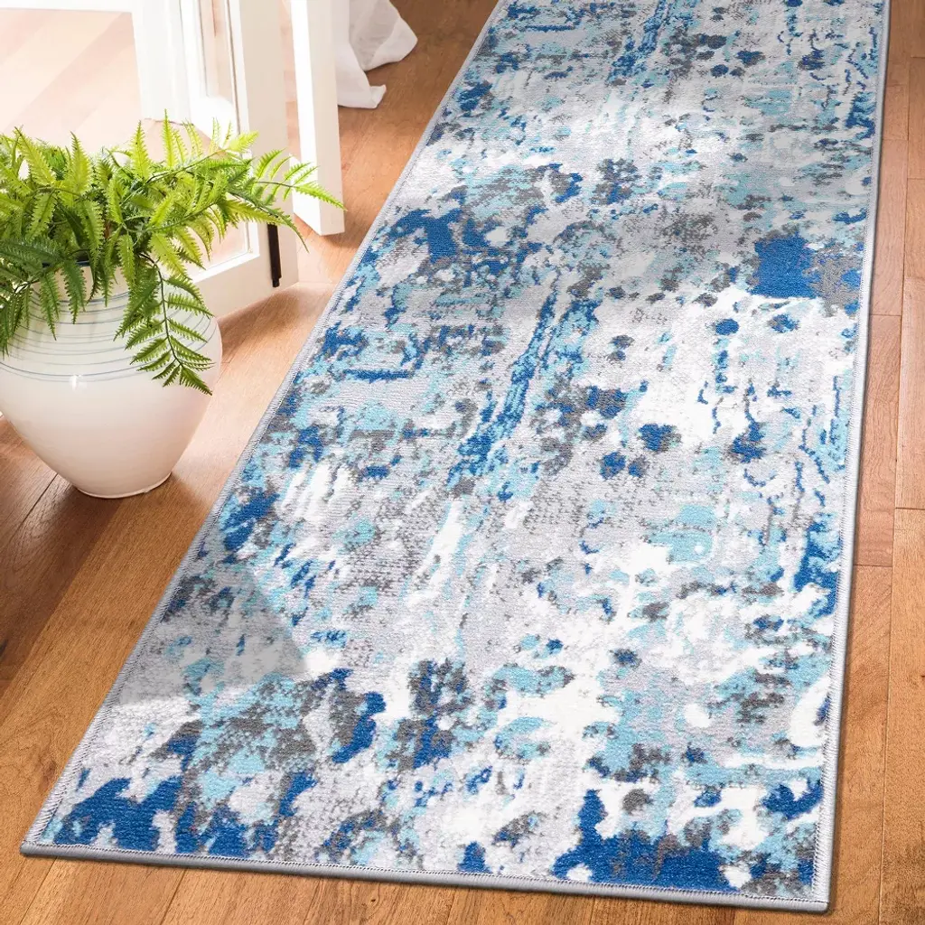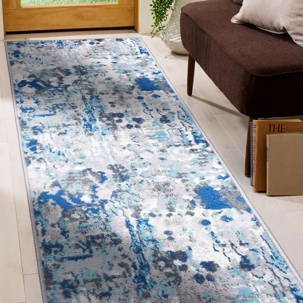 Experience the comfort, durability and style of this modern abstract rug. It features a moderate pile height of 0.31 inches, which makes extremely easy to spot clean and vacuum. It is expertly crafted using 100% of the finest polypropylene fabric and jute backing.