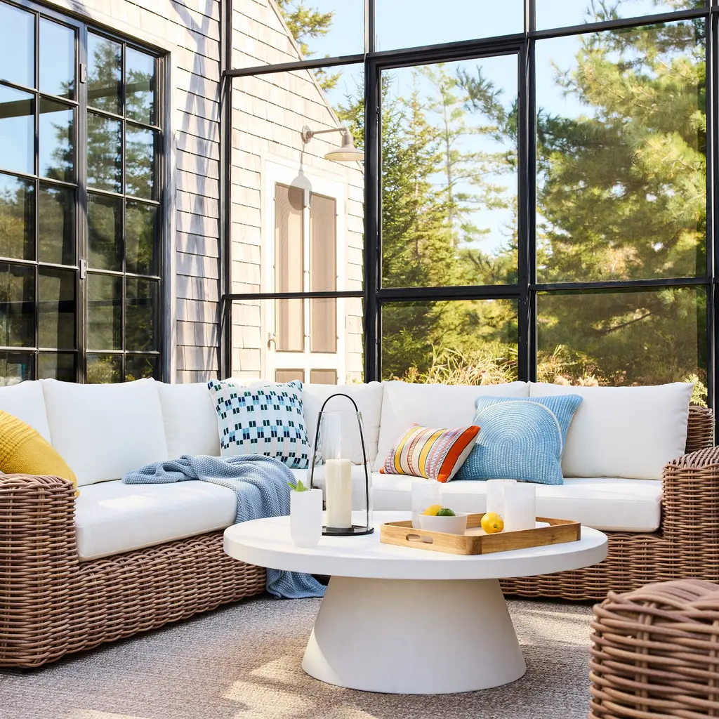 Made of 100% all-weather polypropylene. Can be used indoors or out. Durable, waterproof and super easy to clean.