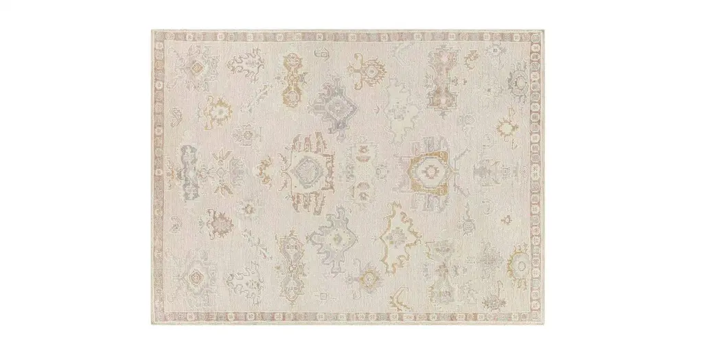 Pastel shades and soft grey tones contrast the classic design of the central medallion and elegant ornamental border. Not sure which rug to choose? Read our guide to find the perfect fit for your space.