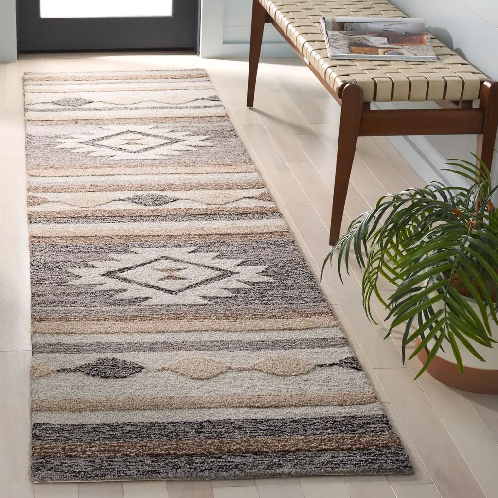 Elevate your living space with the timeless elegance of our 4' x 6' hand-tufted area rug, a small rectangle shape with a plush height of 3/8 inches that offers underfoot comfort. This exquisite piece is expertly crafted by skilled artisans in India, blending an 80% wool and 20% cotton composition for a luxurious and durable finish. The rug features a harmonious blend of brown and grey tones, which enhances its versatile appeal, ensuring it complements a variety of interior styles. At the heart of its design lies a series of geometric and abstract patterns that draw inspiration from traditional aesthetics, making it an ideal choice for those seeking to add a touch of cultural richness to their decor. This rug's pattern is meticulously created using a hand-tufted technique that not only provides a distinct texture but also contributes to its overall durability and quality. Whether placed in a living room, bedroom, or entryway, this beautifully designed area rug promises to bring warmth, comfort, and style to any space it inhabits.