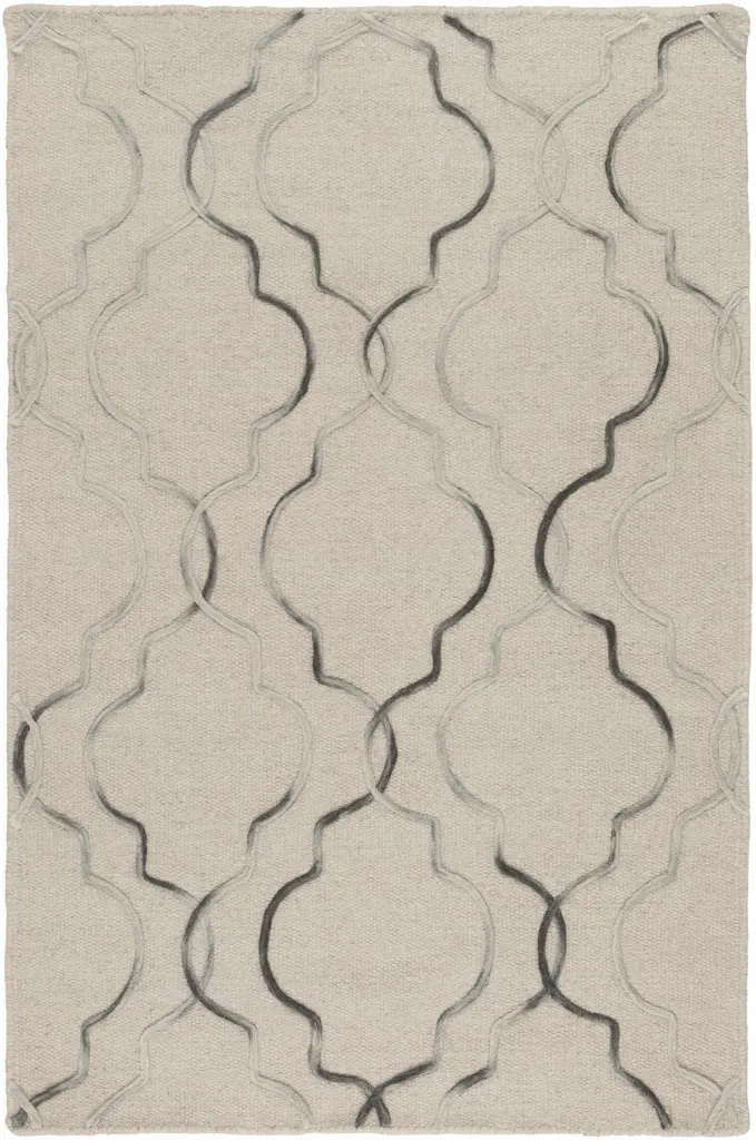 Collection: Wycombe Colors: Black, Light Gray, Taupe Construction: Hand Woven Material: Face: 100% Wool Pile: No Pile Styles: Transitional Made In: India Thickness: 0.2" Price Range: $$$$$ (Affordable)