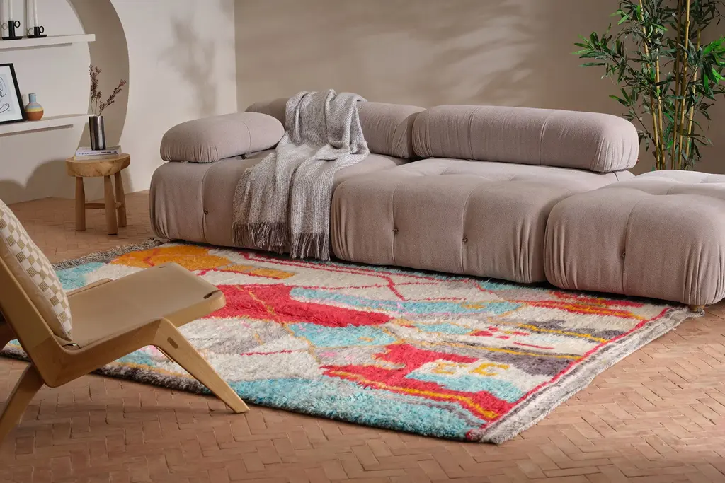 One-of-a-kind new rug, hand-knotted near the small city of Boujad in the Chaouia-Ouardigha region of Morocco