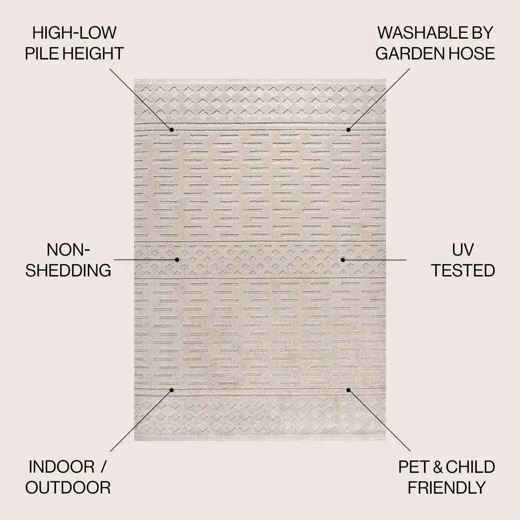Xlendi High-Low Pile Moroccan Geometric Indoor/outdoor Area Rug - Beige / 3 X 5