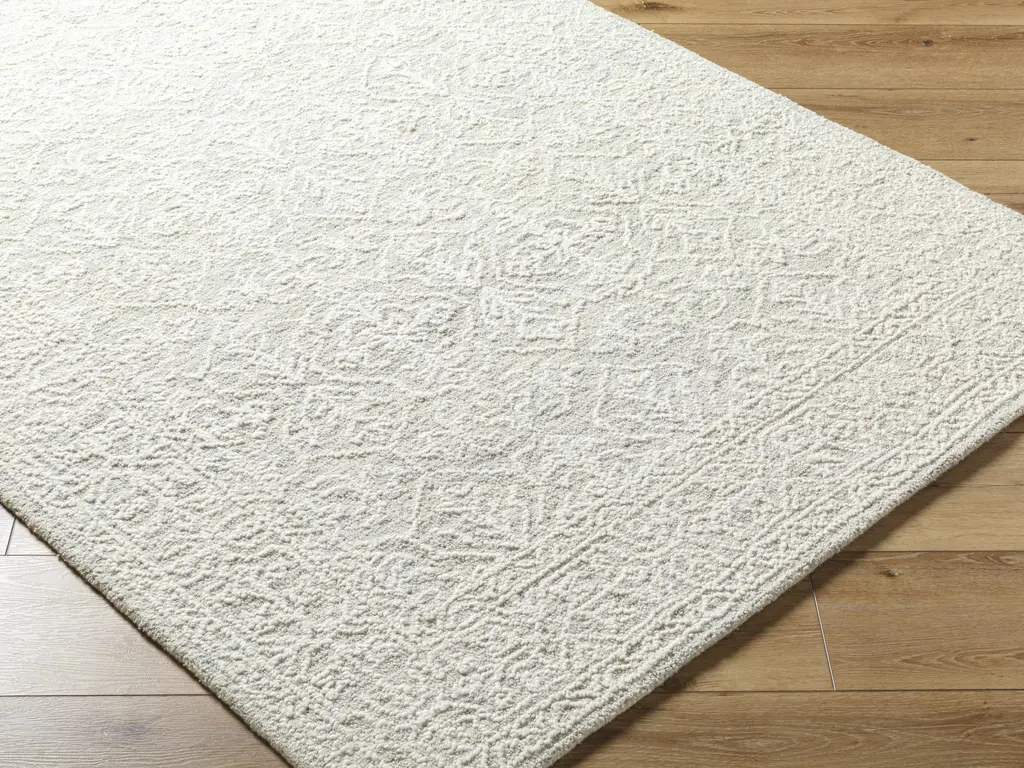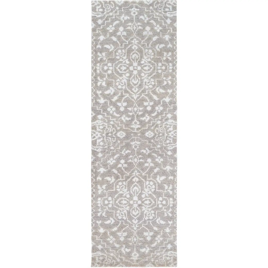 Collection: Yadid Colors: Light Silver, Ash, Silver Gray Construction: Hand Tufted Material: 100% Wool Pile: Medium Pile Pile Height: 0.28" Styles: Traditional Backing: Canvas Made In: India Thickness: 0.55" Price Range: $$$$$ (Affordable)