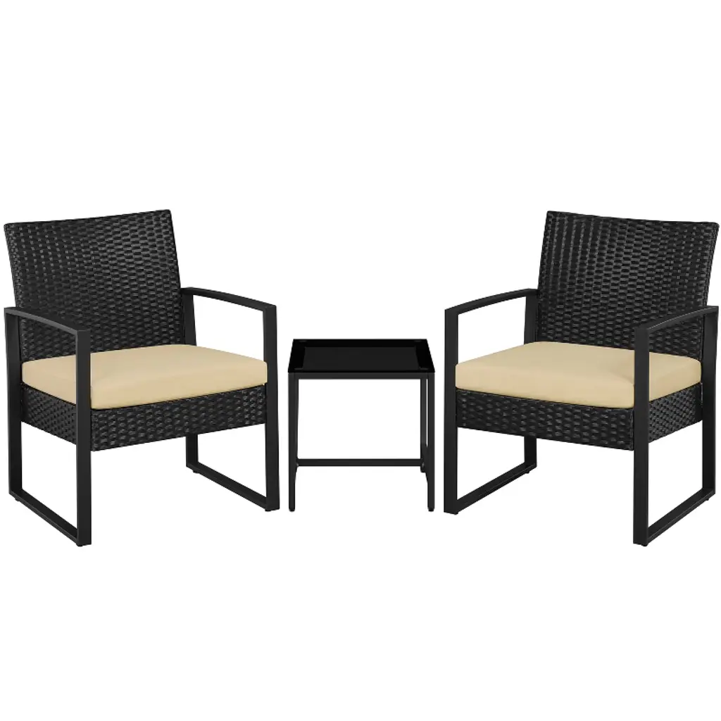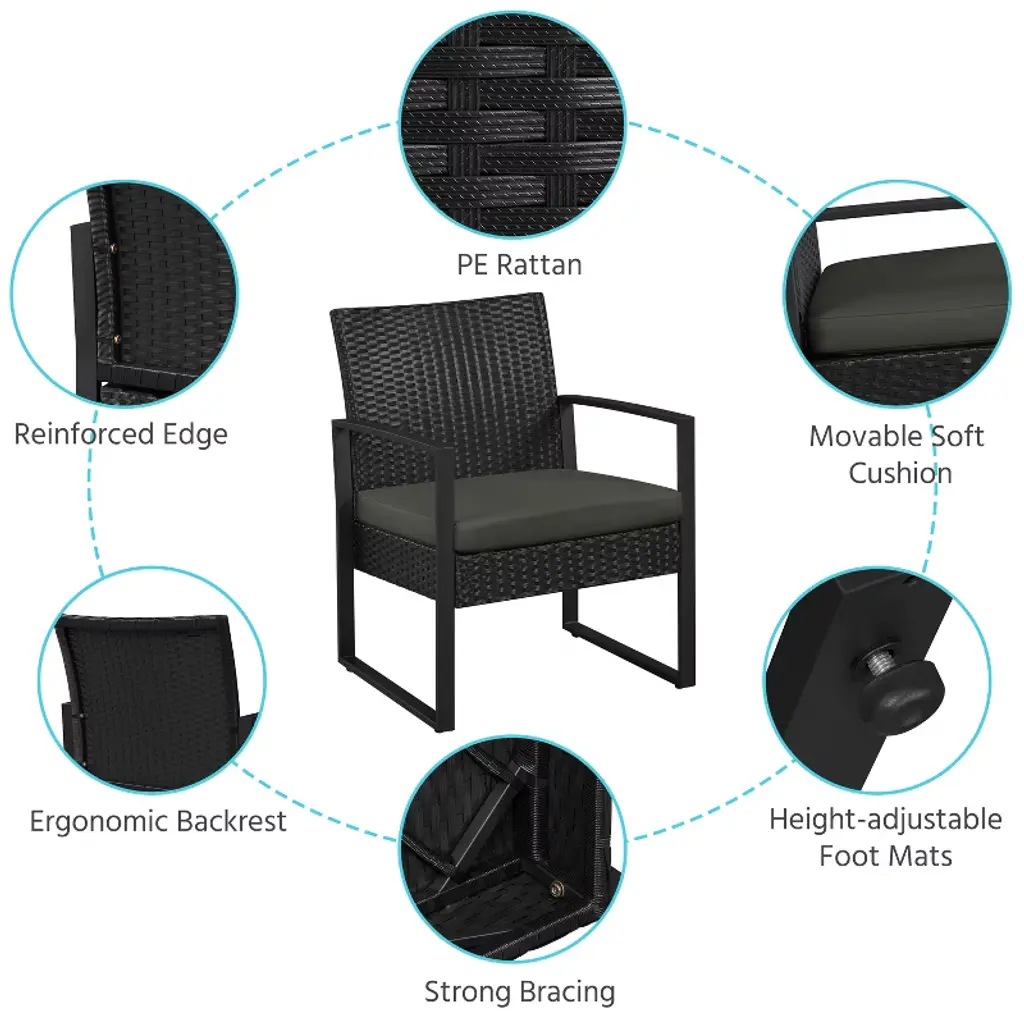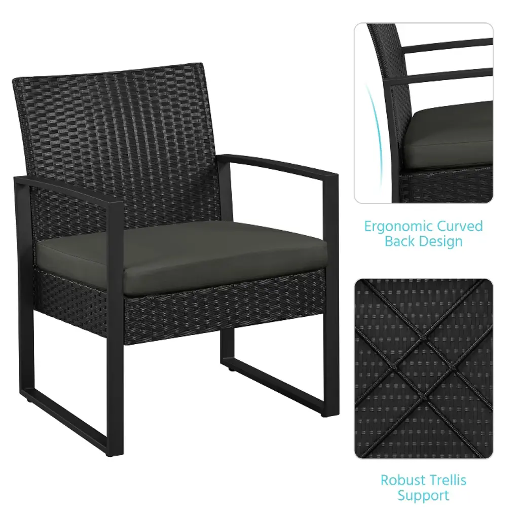 Yaheetech 3 Piece Patio Set Modern Pe Bistro Furniture Conversation Sets, Gray