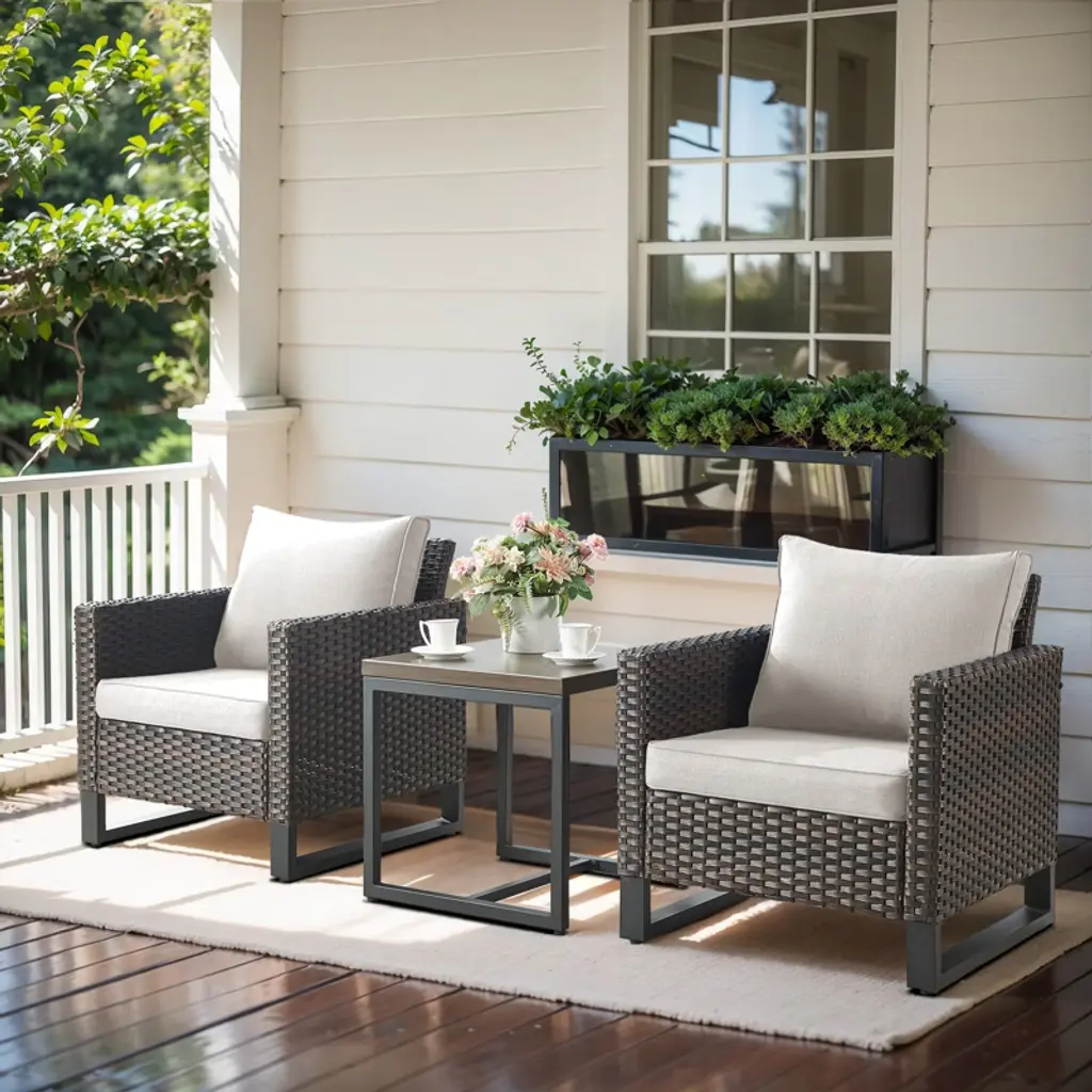 Yaheetech 3 Piece Patio Set Modern Pe Bistro Furniture Conversation Sets, Khaki