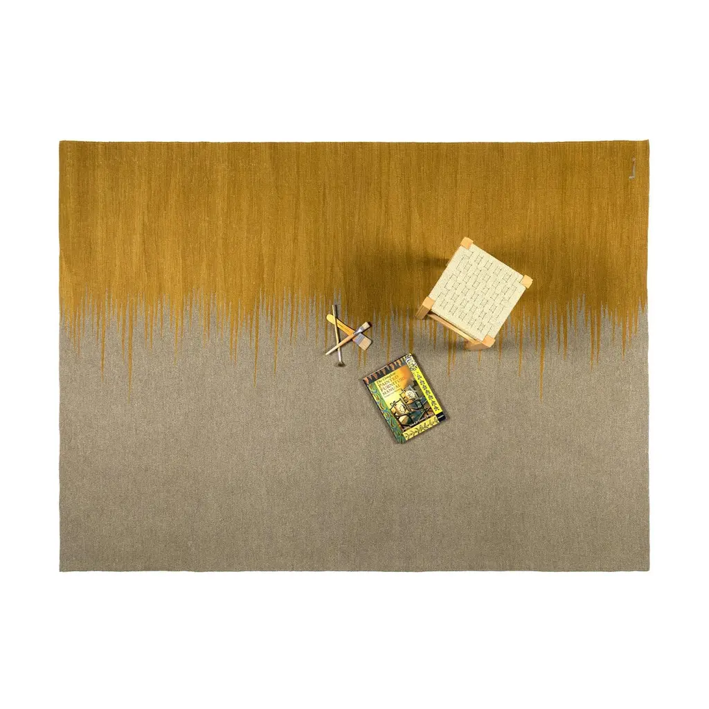 Yakamoz No 2 Contemporary Modern Kilim Rug, Wool Handwoven Mustard-Earthy Gray