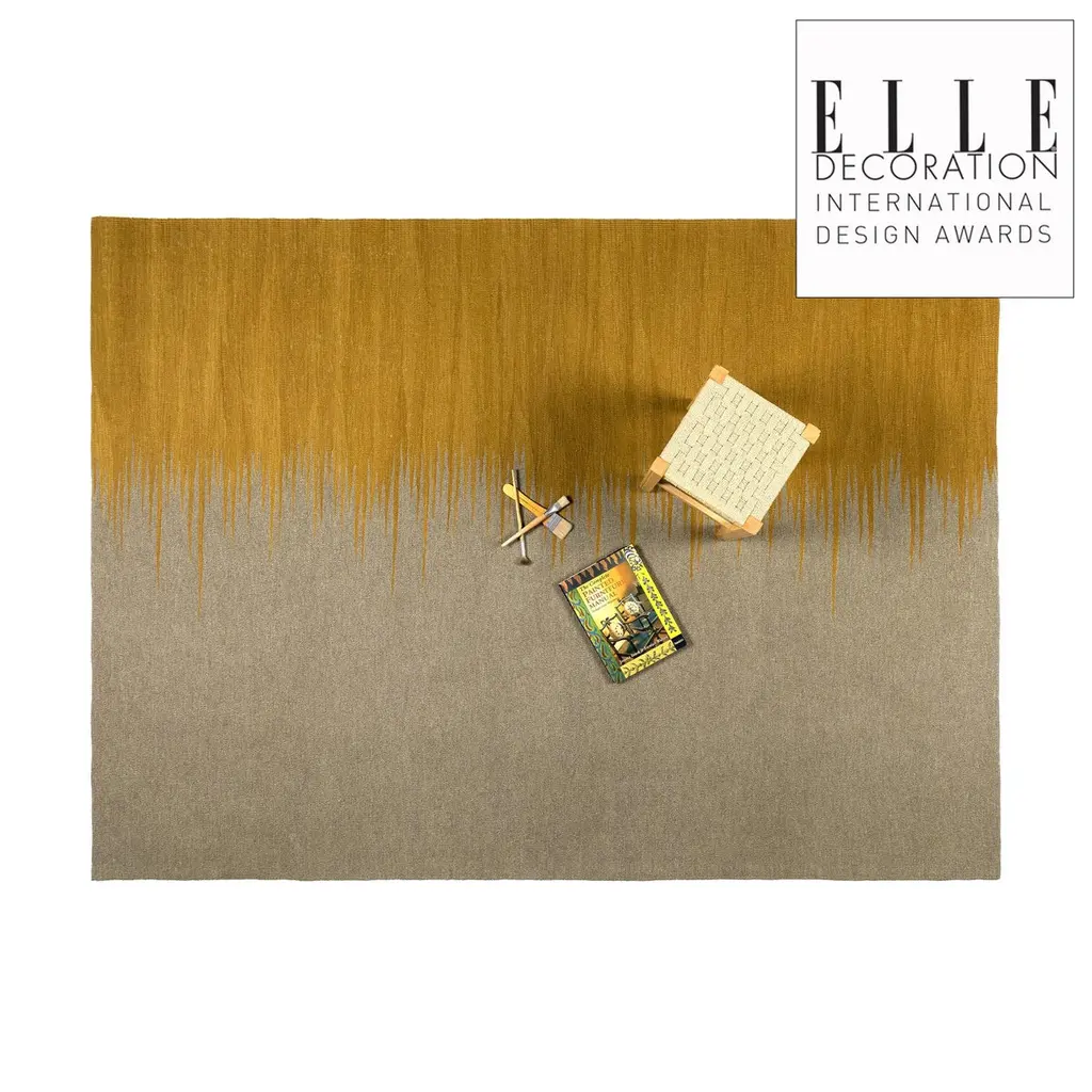Yakamoz No 2 kilim rug is part of a series of kilims that take their inspiration from the poetry of light reflections on the sea surface. The abstract patterns, which are reminiscent of alternating color transitions created by reflected light, are handwoven into these kilims by Anatolian weavers. The name Yakamoz is a special Turkish word meaning bioluminescence, describing the beautiful sight of the moonlight shining over the surface of the sea.Yakamoz is a collection of kilim rugs that reinterpret centuries old craft traditions of Anatolian kilim weaving with a modern, artisanal and sensual design approach. Inspired by the legendary sight of the reflected moonlight over the Agean Sea, Yakamoz collection establishes a contemporary expression at the intersection of design, craft and art. The collection brings a piece of Agean coastal nature and spirit to the everyday life of interiors. Yakamoz Kilim Collection received EDIDA - Elle Decoration International Design Awards in 2020, in Turkey and International Iron A' Design Award in 2021.Yakamoz kilims are handwoven by skilled Anatolian weavers based on kilim weaving technique (flat-weave) using 100% Anatolian sheep wool. As our kilims are handwoven, there may be slight variations in colors, size and shapes. The handwoven nature gives each kilim rug its one and only and distinctive character. Material: 100% woolDimensions: 150 cm x 200 cmCan be custom sized and colored.