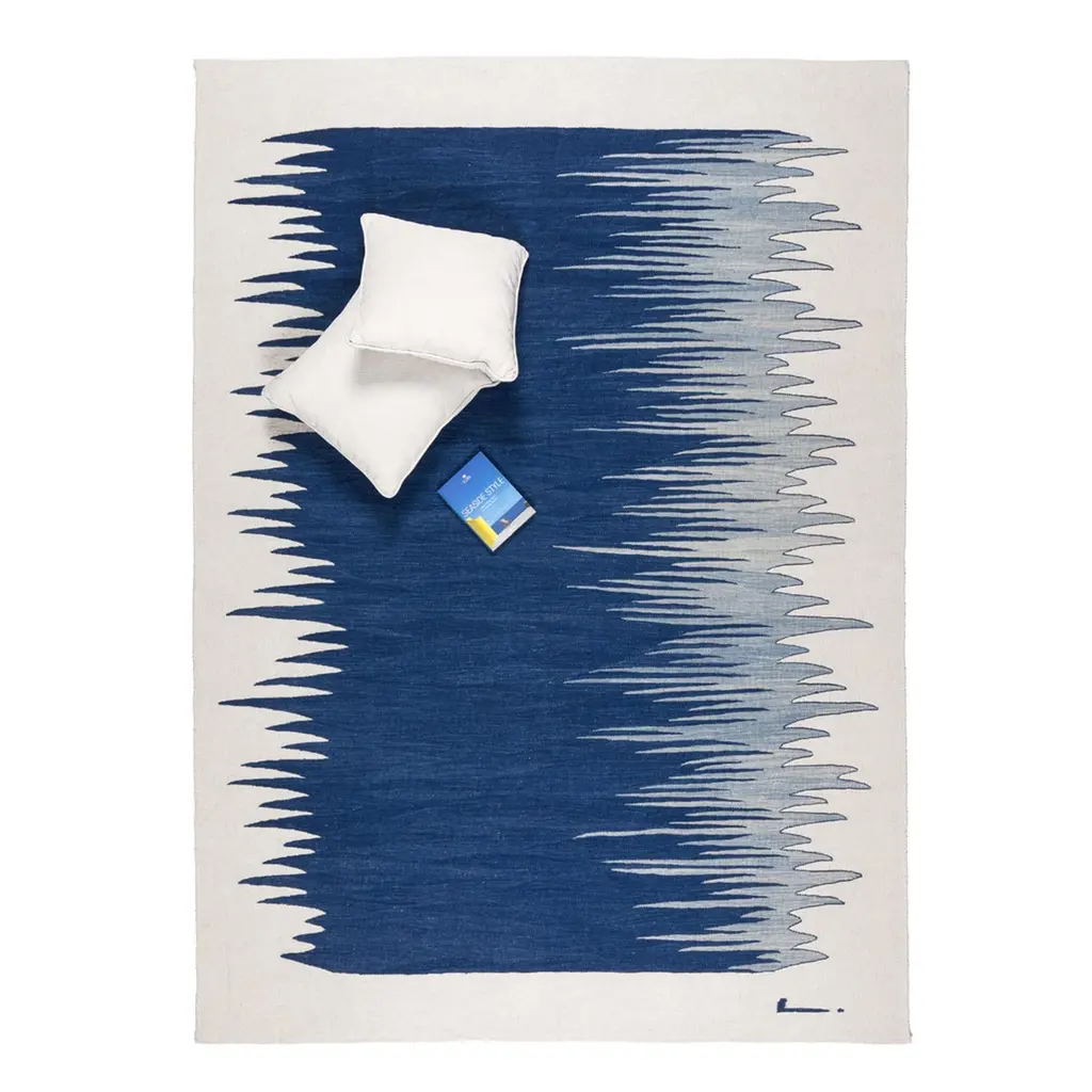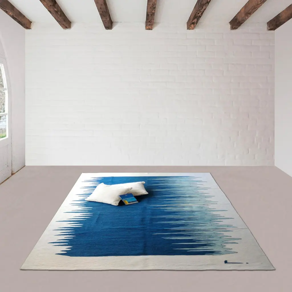 Yakamoz No 4 Contemporary Modern Kilim Rug Wool Handwoven Blue And Dune White