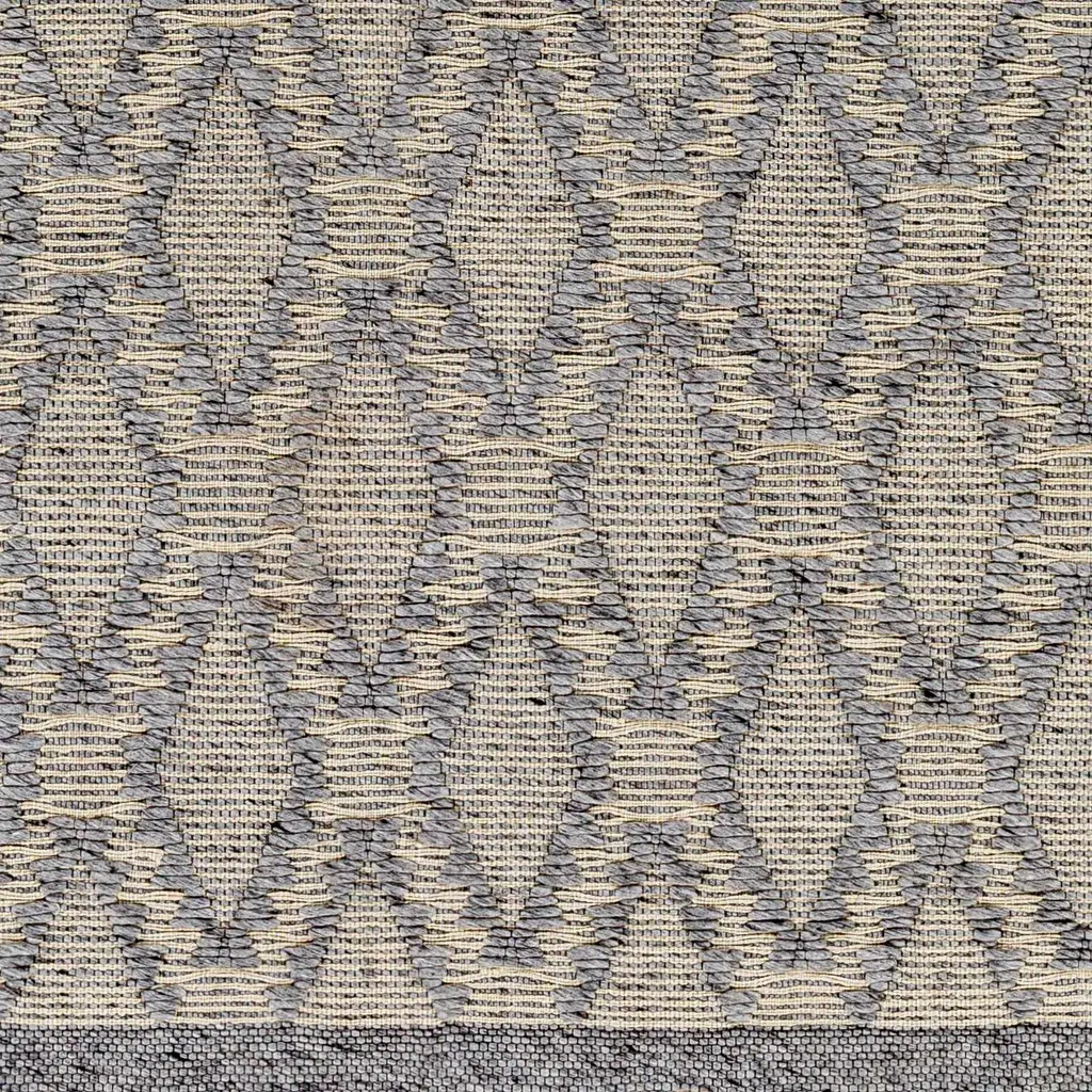 Collection: Yank Colors: Gray, Cream, Black Construction: Hand Woven Material: 30% Wool,70% RecycledPETYarn Pile: No Pile Styles: Transitional,Bohemian Made In: India Thickness: 0.35" Price Range: $$$$$ (Affordable)
