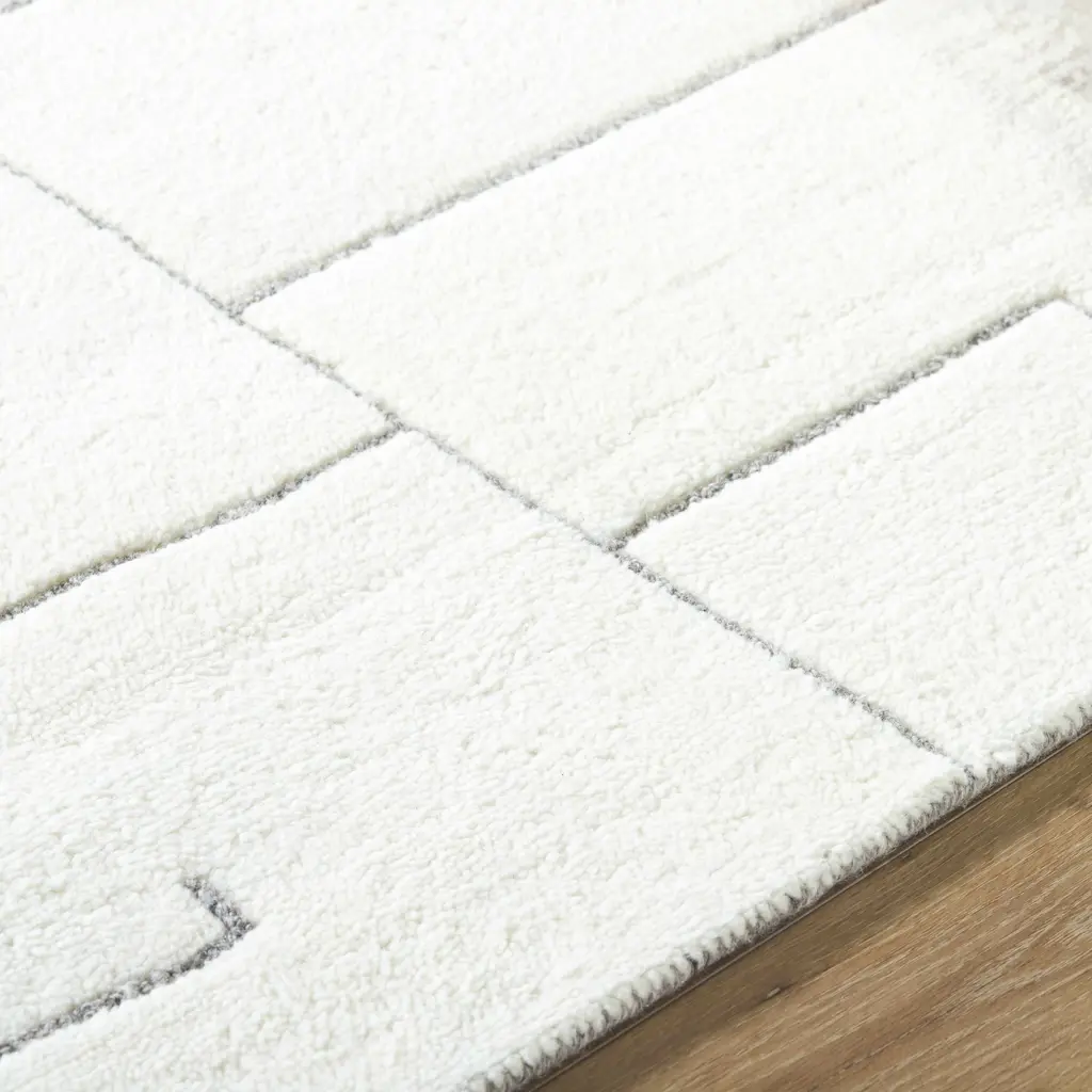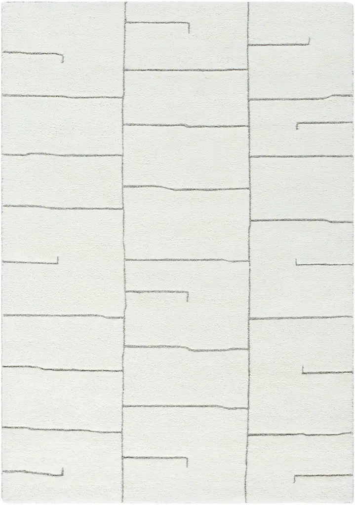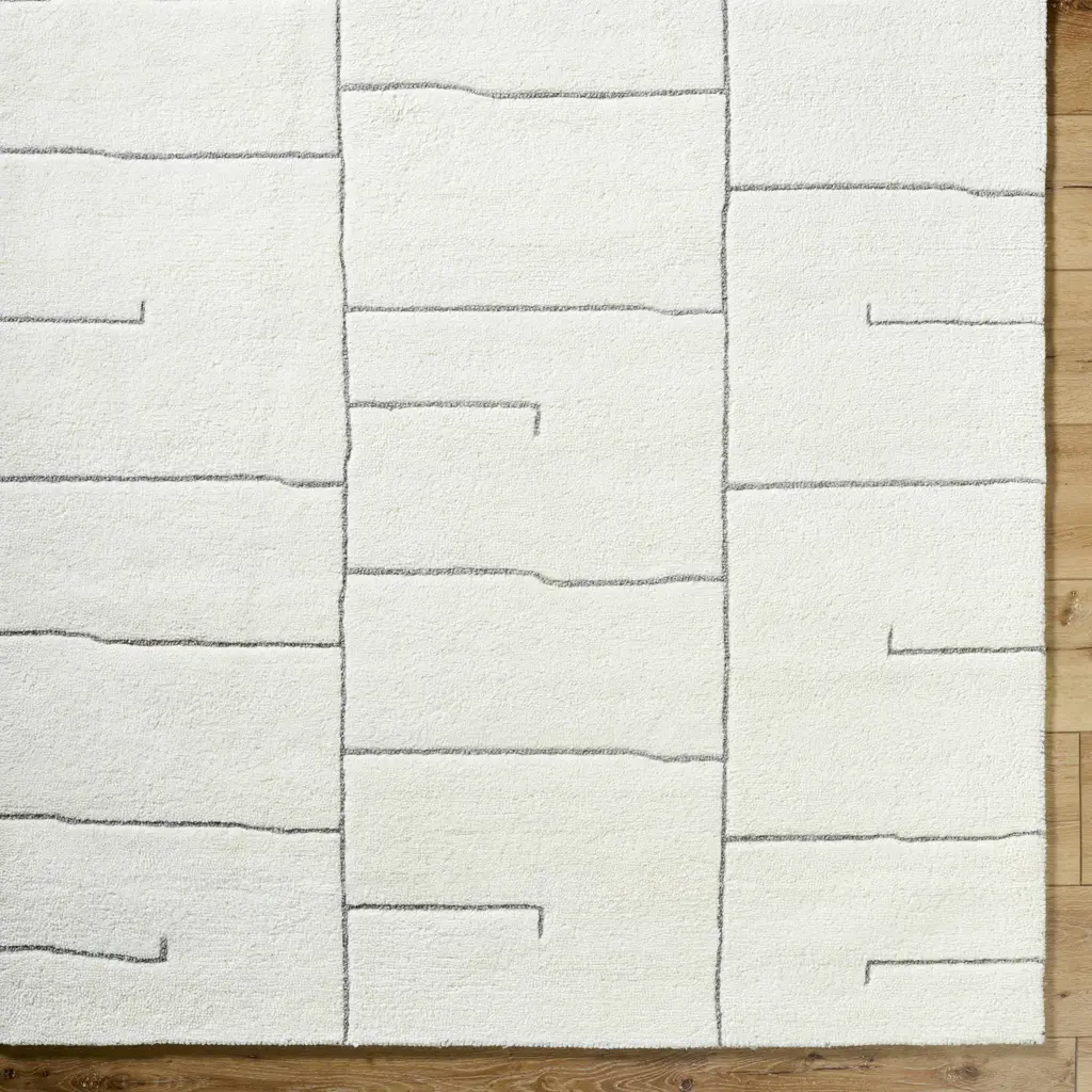 Collection: Yanka Colors: Off White, Light Silver Construction: Hand Tufted Material: 100% Wool Pile: Medium Pile Pile Height: 0.4" Styles: Transitional,Bohemian Backing: Canvas Made In: India Thickness: 0.55" Price Range: $$$$$ (Affordable)