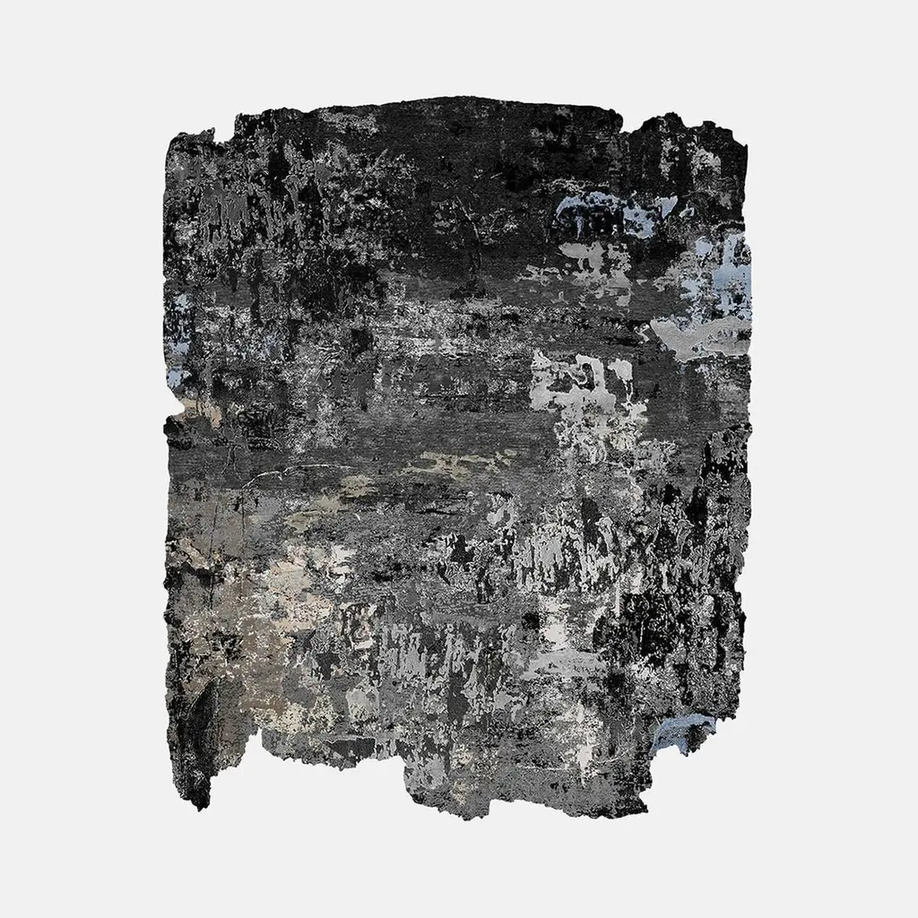 Yeager Night Edit Rug by HENZEL STUDIODimensions: W 243.84 x L 299.72 cm.Materials: Silk.Calle Henzel stands as a trailblazer in the realm of organic, free-form shaped rugs, with his groundbreaking, award-winning Frozen Cut collections renowned for their distinctive shapes and innovative aesthetics. Henzel was the first designer to introduce such collections, effectively setting a new standard within the industry. His pioneering work is the culmination of a meticulous decade-long scientific experiment, during which rugs were exposed to the harsh environmental elements of Northern Sweden. This rigorous process enabled Henzel to draw inspiration from natural phenomena such as erosion, the thawing of snow, and seasonal germination, observing how these elements affected the rugs. The outcomes of this experiment were meticulously translated into his designs, which are intricately woven using centuries-old artisan practices. Henzel's work embodies a profound connection to nature, seamlessly integrating exceptional craftsmanship and artistry. His creations are a harmonious blend of innovation and tradition. By marrying natural elements with the timeless techniques of hand-knotting, each piece emerges as a testament to both cutting-edge design and timeless elegance. Henzel's work has been exhibited at prominent venues and museums worldwide.Henzel Studio is a Swedish family company, based in Gothenburg, founded in 1999 by the artist Calle Henzel and his wife Asa. Henzel produces luxury carpets featuring exclusive designs of contemporary art, signed by big names of art, graphics, design and of international photography: Scott Campbell, Helmut Lang, Richard Prince and many others. Crossing the border between craft, art and design, rugs by Henzel Studio are distributed through the best galleries in the world of design and are handmade using 100% New Zealand wool, one of the purest natural fibers in the world, where the material is dyed exclusively with ecological pigments from Switzerland. Calle Henzel experimented with a new form of art where form, finishes and treatments, combined with high quality standards, they ensure the carpets as a true work of art, an investment intended to last forever.