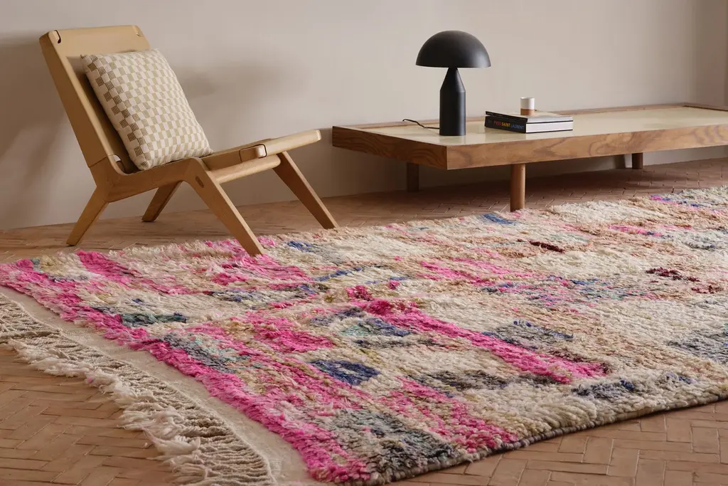 Our Moroccan pieces are each one-of-a-kind. Much of our collection was woven between 30 and 100 years ago, and curated by us. Other rugs in our collection are fresh off the loom and made with traditional techniques. Moroccan rugs don’t come with a key. As with any painting or poem, their motifs have many subjective interpretations. Originally made for personal use, these rugs took months to weave, documenting a shifting tide of events and emotions in the weaver’s life.