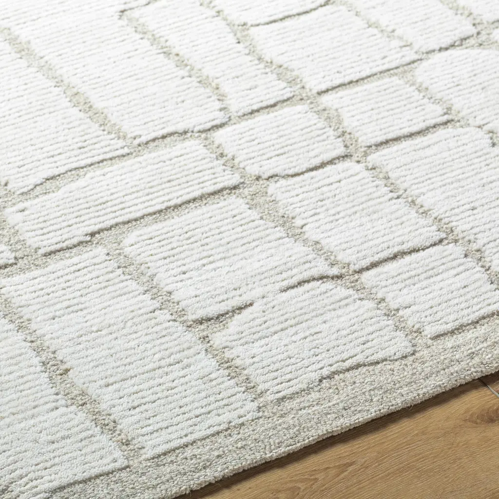 Collection: Yetty Colors: Light Silver, Ash Construction: Hand Tufted Material: 100% Wool Pile: Medium Pile Pile Height: 0.3" Styles: Contemporary Backing: Canvas Made In: India Thickness: 0.5" Price Range: $$$$$ (Affordable)
