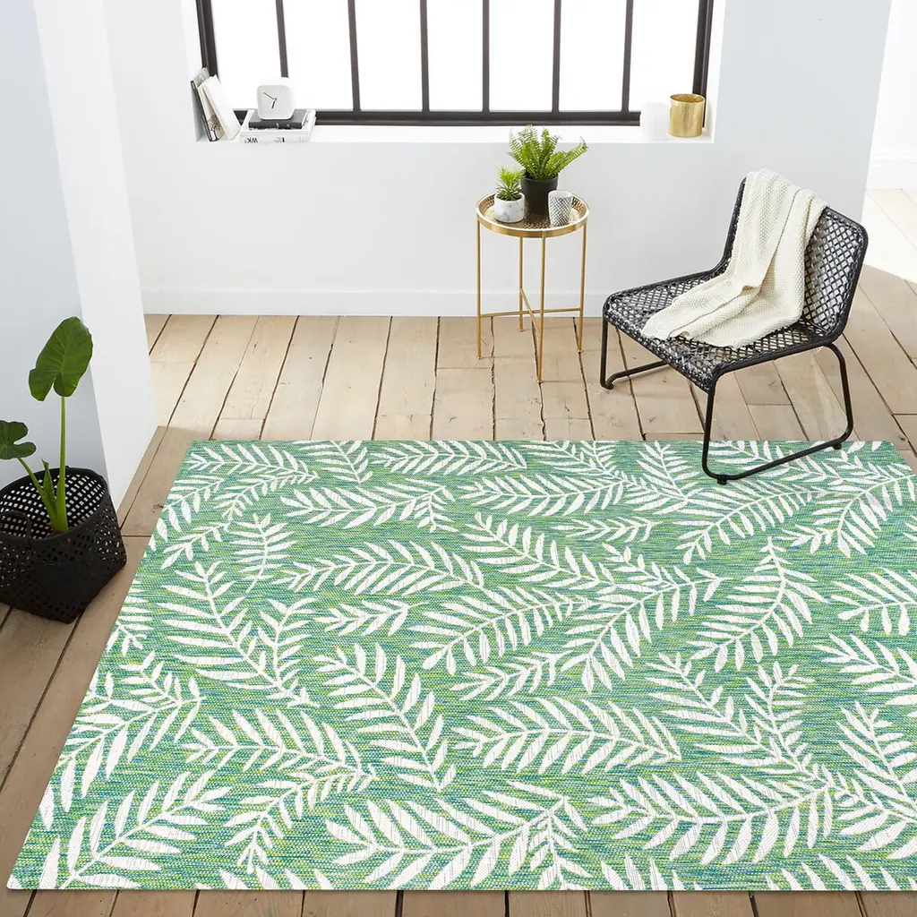 Can't make it to the tropics? Bring the tropics to you, courtesy of this polypropylene rug, adorned with palm fronds, that's suitable for use outdoors as well as inside. A rug pad is recommended to help prevent slipping and extend the life of the rug.