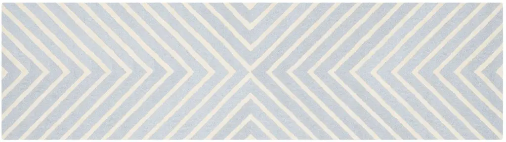 Crafted of wool, this rug refreshes any space with its graphic pattern and light blue and ivory hues. We recommend a rug pad to extend the life of your rug and keep it securely in place.