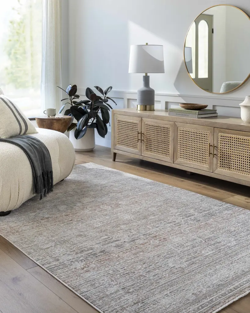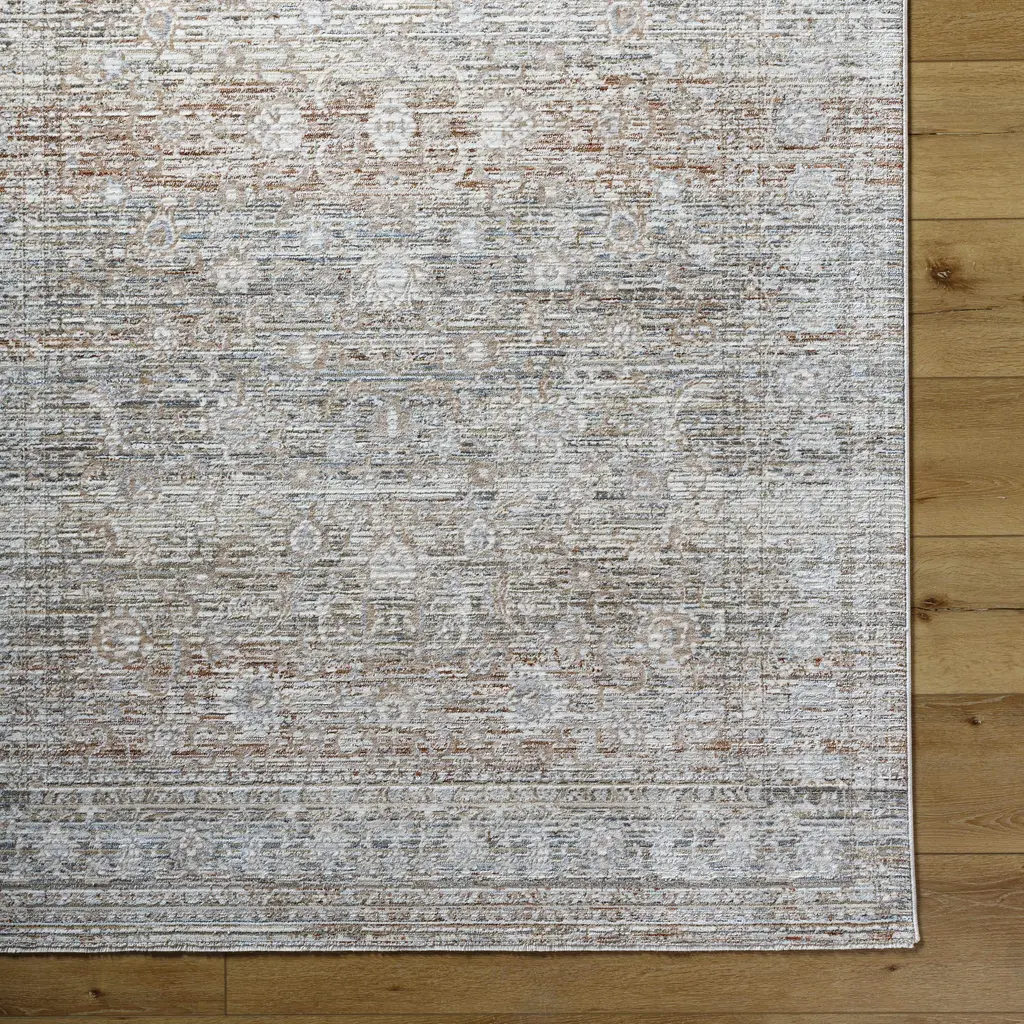Collection: Zabby Colors: Ash, Silver Gray, Sage Construction: Machine Woven Material: Face: 100% Polyester / Warp: 100% Cotton Pile: Medium Pile Pile Height: 0.24" Styles: Traditional Made In: Turkey Thickness: 0.28" Fringe Length: 1.18" Price Range: $$$$$ (Most Affordable)
