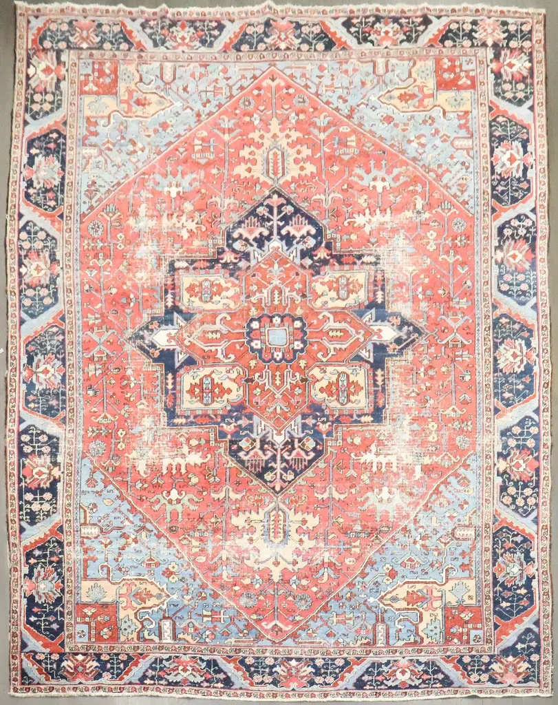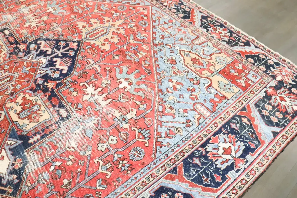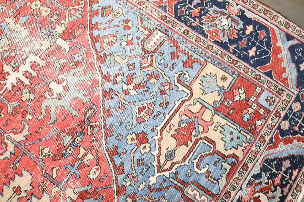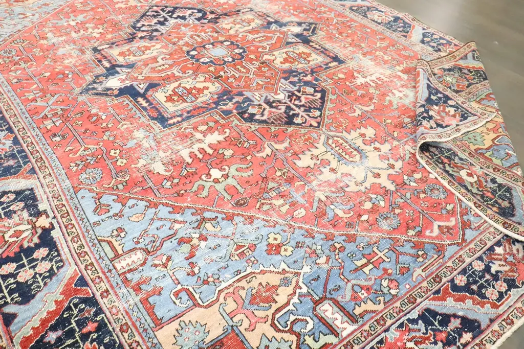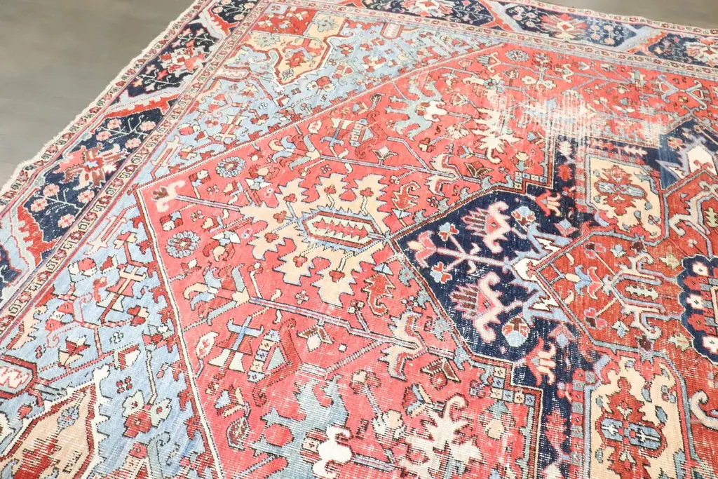 Zabihi Collection Antique Persian Large Heriz Worn Rug