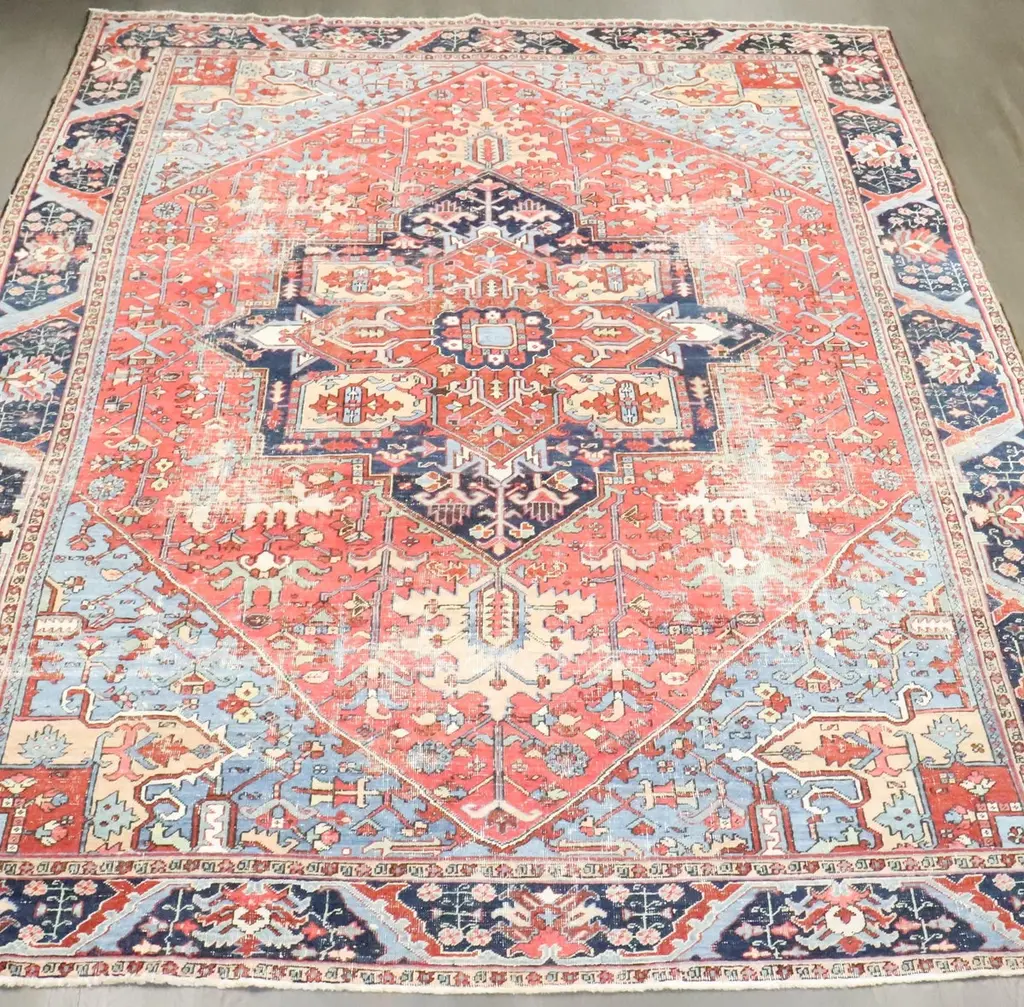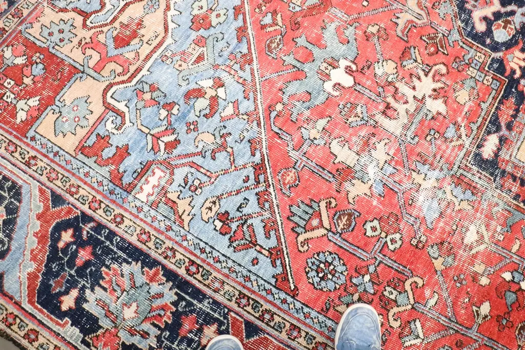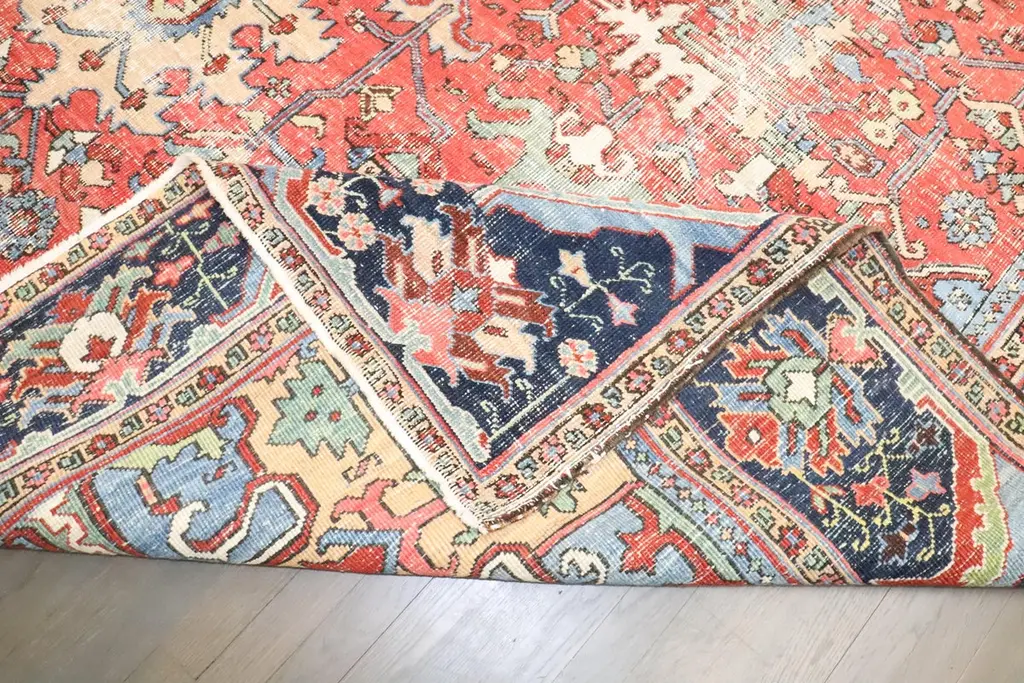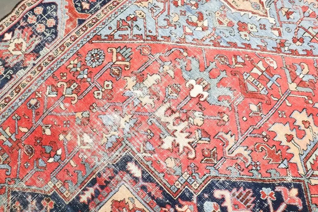 Zabihi Collection Antique Persian Large Heriz Worn Rug