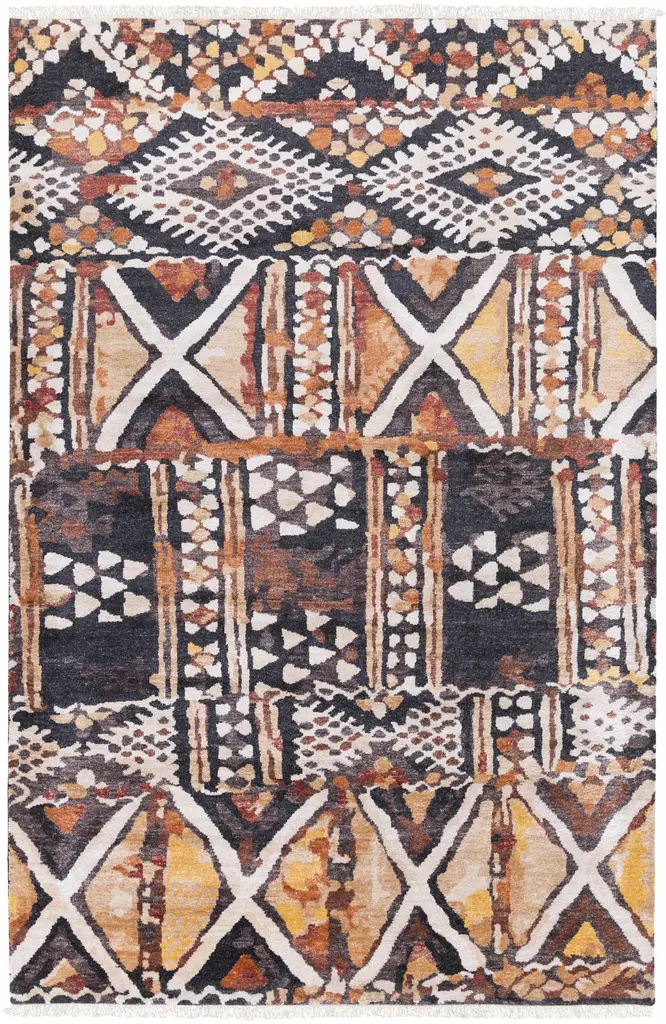 Zambia 36 X 24 Inch Khaki/camel/saffron/burnt Orange/tan/black Rugs, Bamboo Silk And Wool