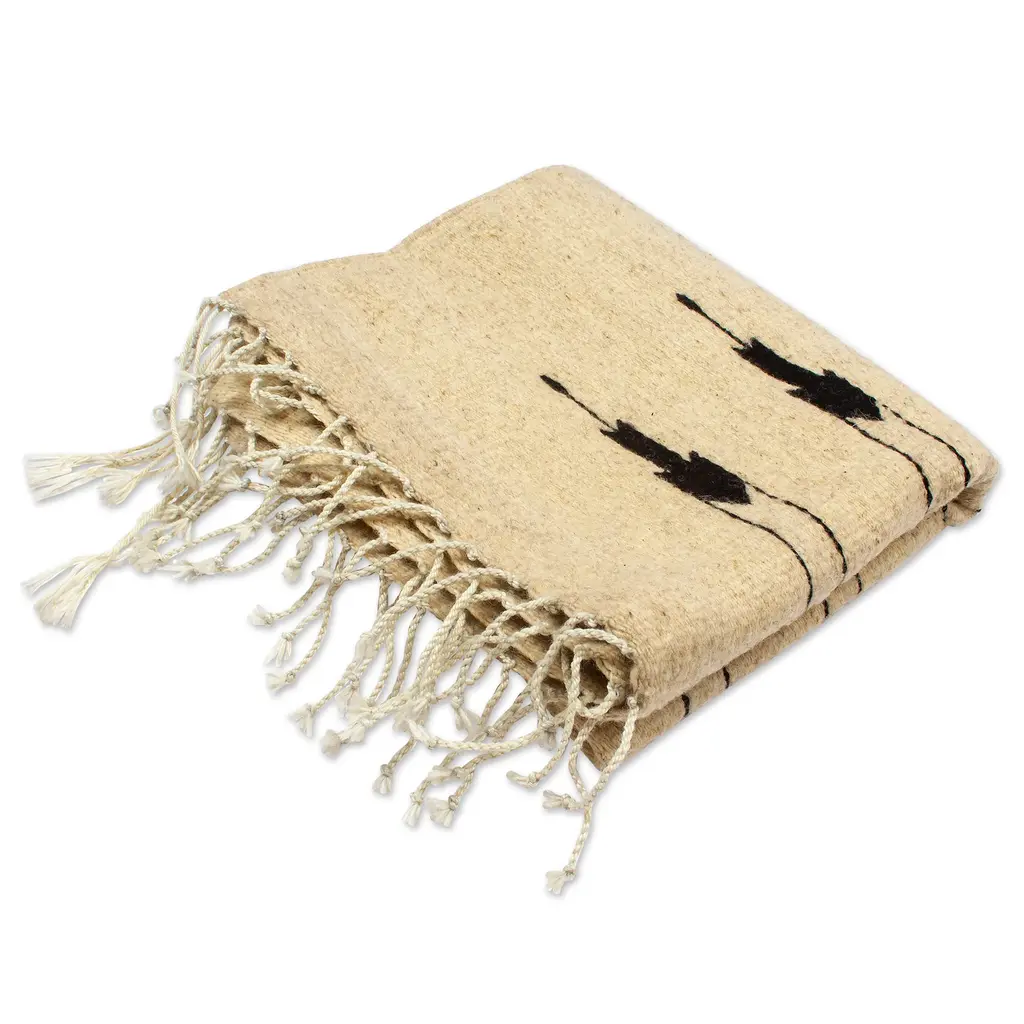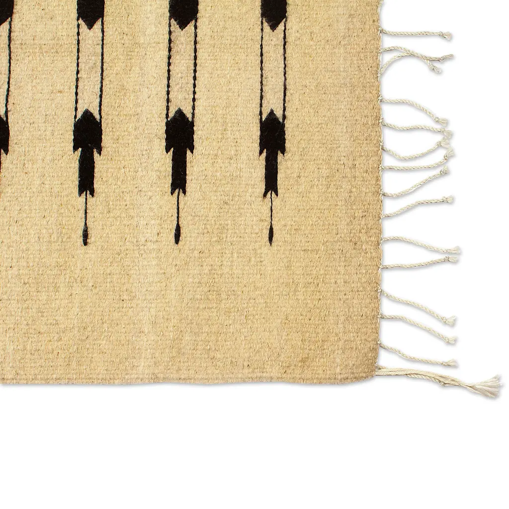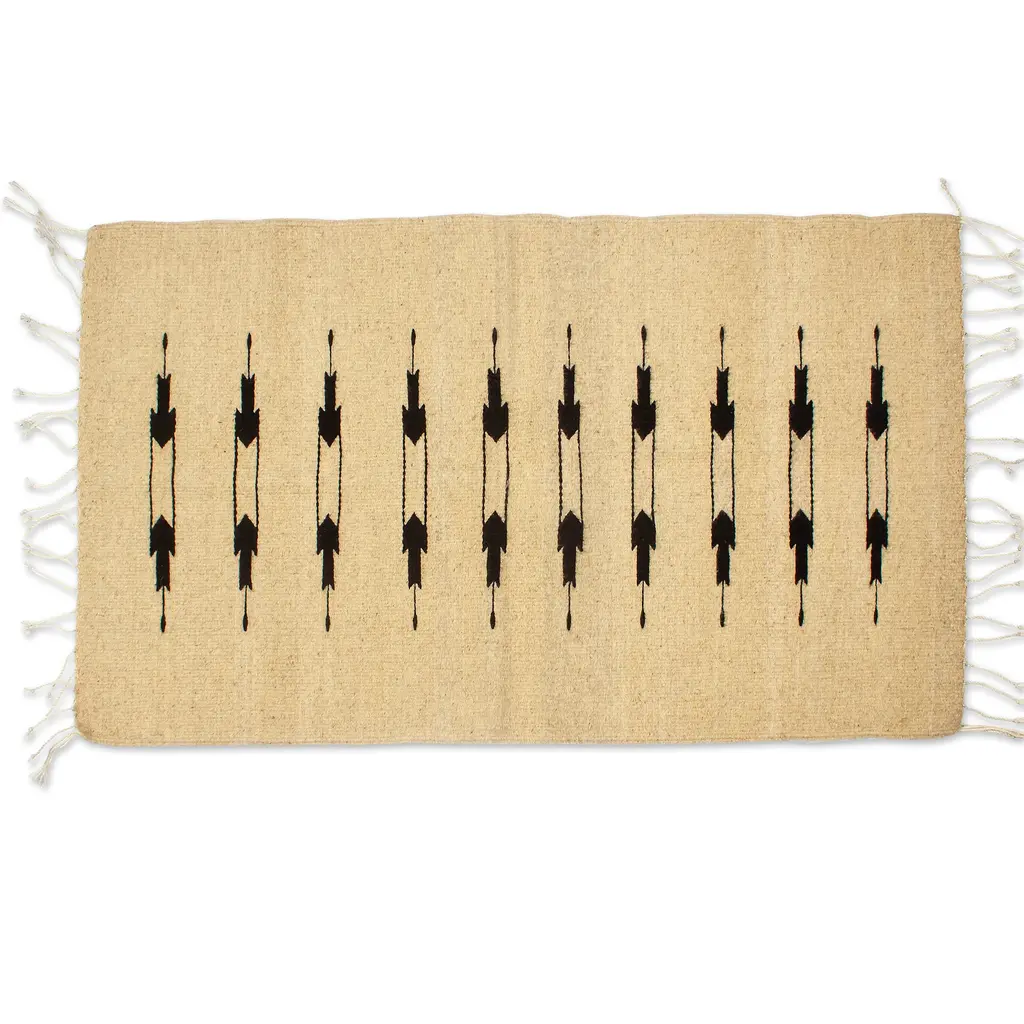 Zapotec-Inspired Vanilla And Black Fringed Wool Rug (2x3)- Beige Majesty