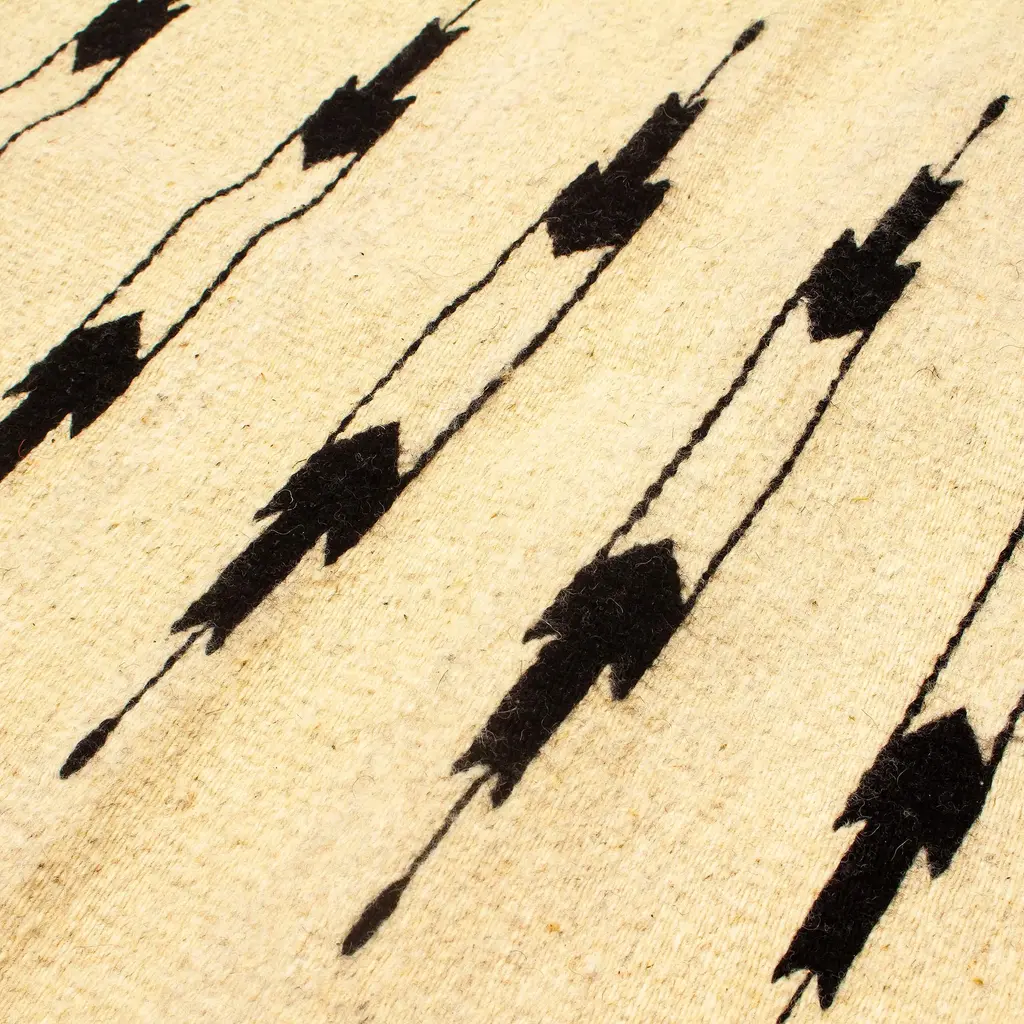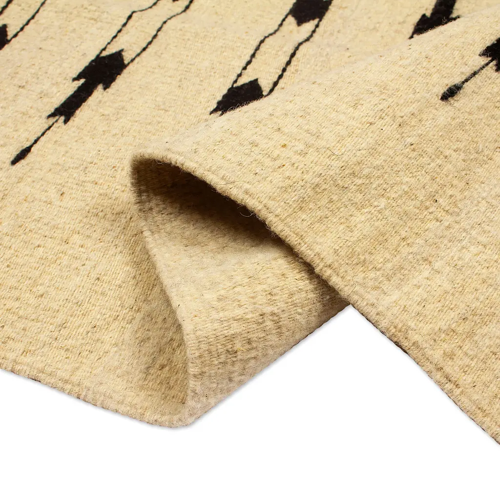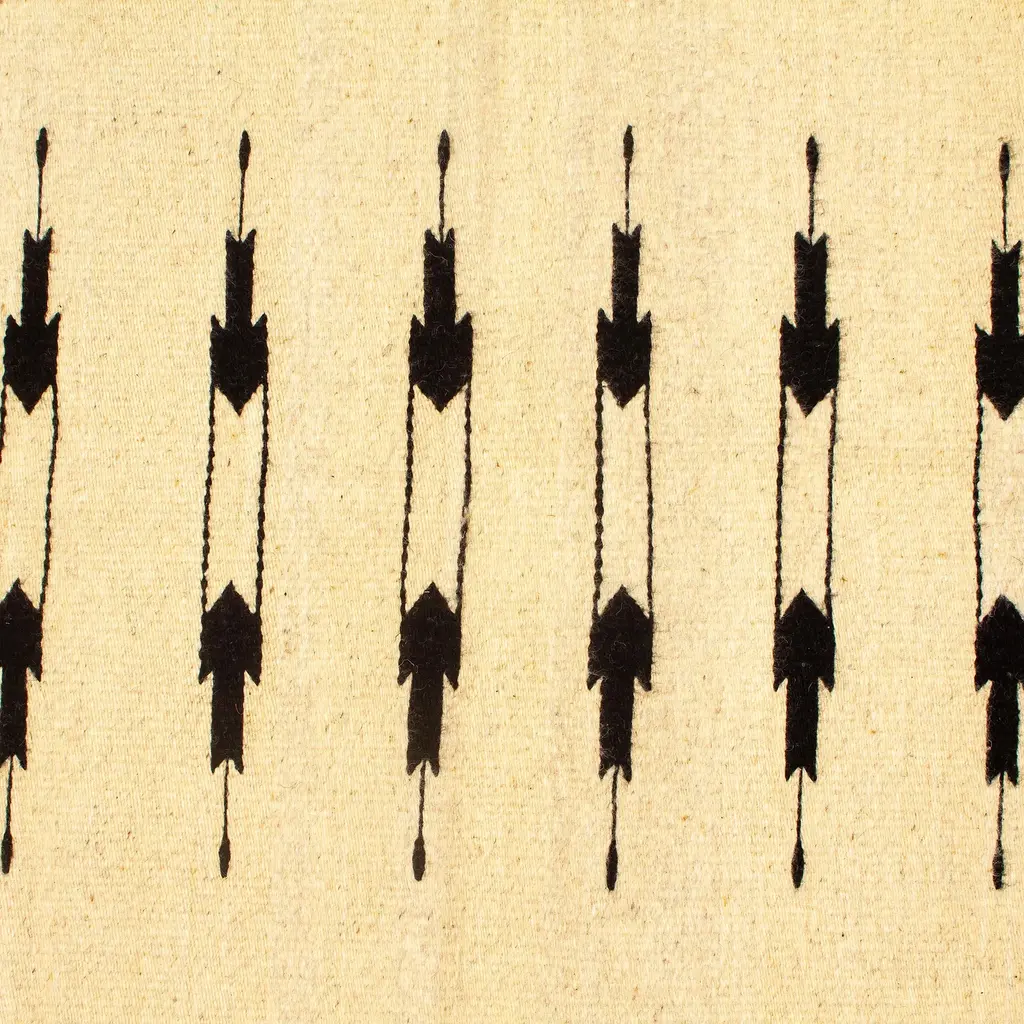 Let Delfina Ruiz's Zapotec wool rug transform your spaces with unique elegance. Refined threads unite in this handloomed design whose ancestral inspiration merges with modern themes, creating a distinguished pattern in vanilla and black hues.