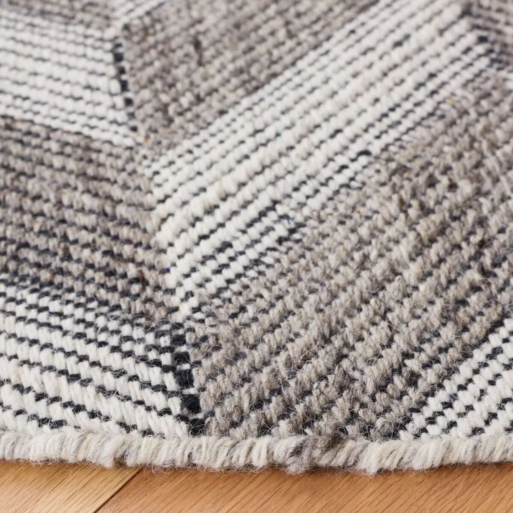Elevate the aesthetic of your living space with this exquisite 3' X 5' area rug. A harmonious blend of grey and ivory hues intertwine in a sophisticated herringbone pattern, creating a look that is both contemporary and timeless. Crafted with the utmost precision, this small rectangular treasure, measuring a subtle 1/4" in height, showcases the remarkable artistry of India's Flat Weave technique. A pure wool construction not only provides a soft tactile experience underfoot but also promises durability to withstand the demands of everyday life. Ideal for complementing a range of decor styles, this rug adds a layer of understated elegance to your home or office. Discover the perfect balance of form and function as you introduce this woolen masterpiece to your cherished space, and let its subtle charm and superior craftsmanship transform any room into a haven of style and comfort.