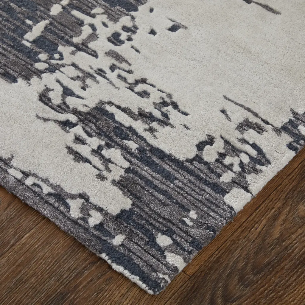 Collection: Zarah Colors: Ivory, Gray, Blue Construction: Hand Tufted Material: Face: Viscose, Wool / Warp: Cotton Pile: Medium Pile Pile Height: 0.59" Styles: Contemporary,Bohemian & Eclectic Backing: Cotton Made In: India Thickness: 0.59" Price Range: $$$$$ (Premium)