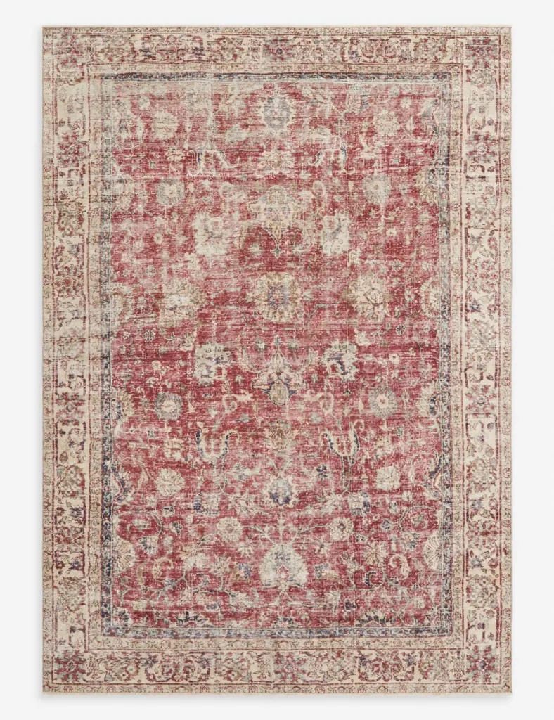 The Zari Area Rug from Four Hands is power-loomed in Egypt, with patterns inspired by high-quality scans of vintage rugs. Carefully refined by designers, each piece closely replicates the original colors and details for an authentically antiqued look. With a rich texture and timeless appeal, this versatile rug may have slight size variations of up to 5%.