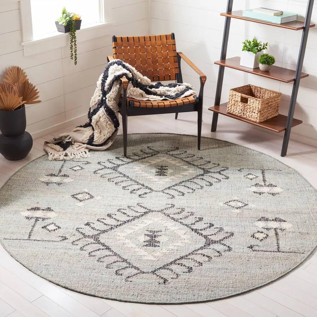 Introduce timeless elegance and artful design into your space with this exquisite 3' X 5' small rectangle area rug. Crafted with the traditional flat weave technique for a sleek profile of 1/4" height, this resilient jute masterpiece brings a slice of Bohemian charm to any room. Made with care in India, the rug showcases a sophisticated grey and black palette, marrying seamlessly with various decor settings. The rug's pattern features a striking, geometric arrangement with central diamond motifs flanked by intricate border designs, offering a balanced visual appeal that captivates and complements. This piece is not only a statement of style but also sustainability, as its durable jute construction ensures long-lasting enjoyment. Perfect for layering or to stand alone as a focal point, this rug promises to infuse your home with a touch of eclectic flair.