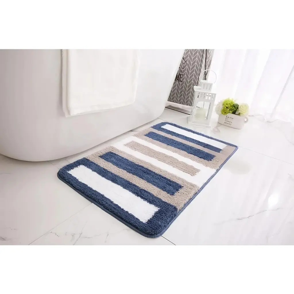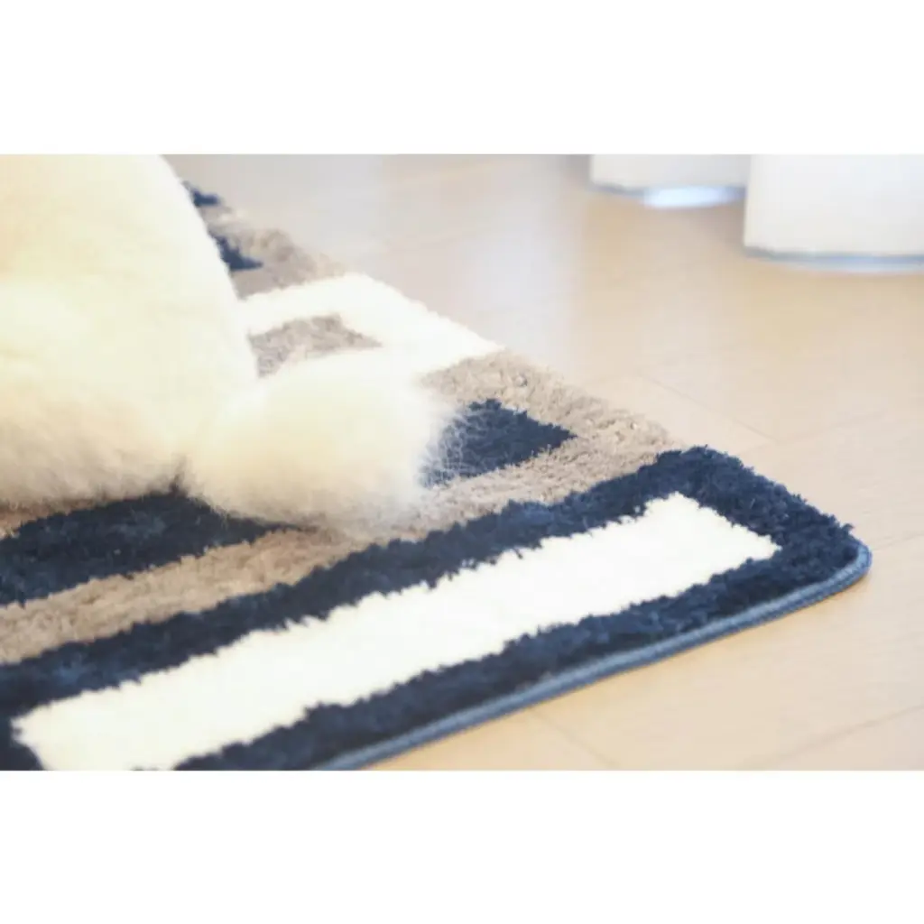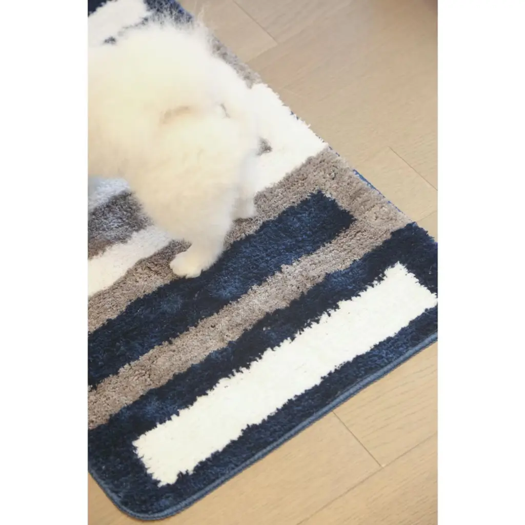 Upgrade your home decor with the Zarkea Pet-Friendly Microfiber Striped Area Rug. This rug combines style and practicality,featuring a modern striped pattern in navy, beige, and white that effortlessly complements various spaces, from bathrooms to pet areas. Crafted from ultra-soft microfiber,it offers a cozy surface for your feet and a comfortable spot for your pets to lounge. Designed with pet owners in mind, it's pet-proof. The durable microfiber resists scratches from playful paws and deters chewing, standing up to daily pet-related activities. Cleaning is a breeze-it's fully washable, so you can easily remove pet hair, dirt, and stains in the washing machine. The quick-drying feature prevents mildew buildup, keeping the rug fresh. Plus, the anti-slip backing ensures it stays securely in place on different floor surfaces, adding safety for you and your pets. With two convenient sizes, 20" x 32" and 24" x 35",you can find the perfect fit for your bathroom, entryway, or any space in need of a stylish and functional upgrade.