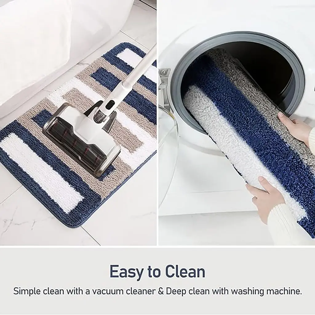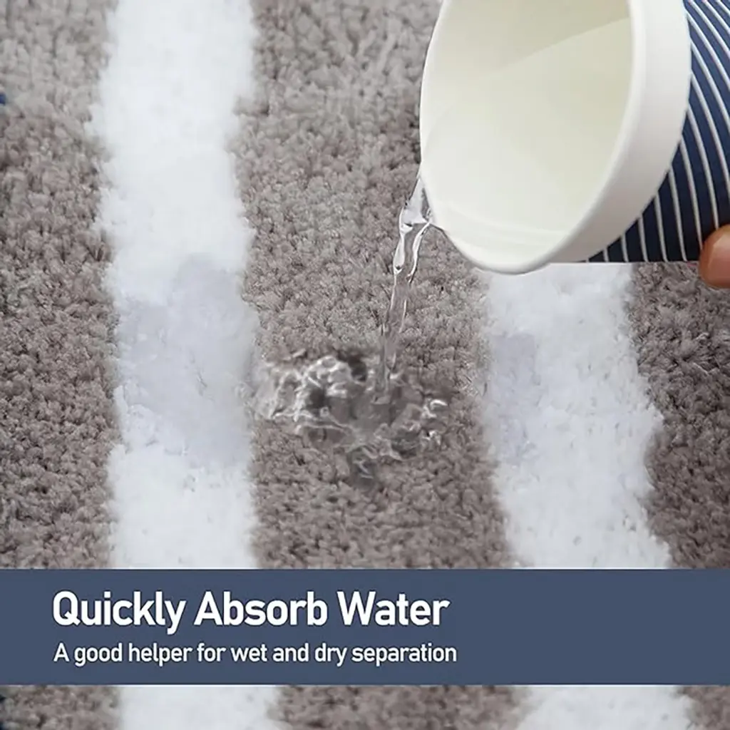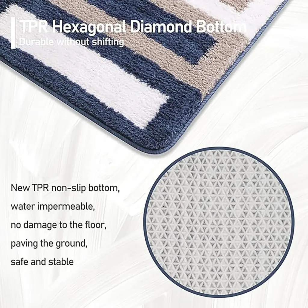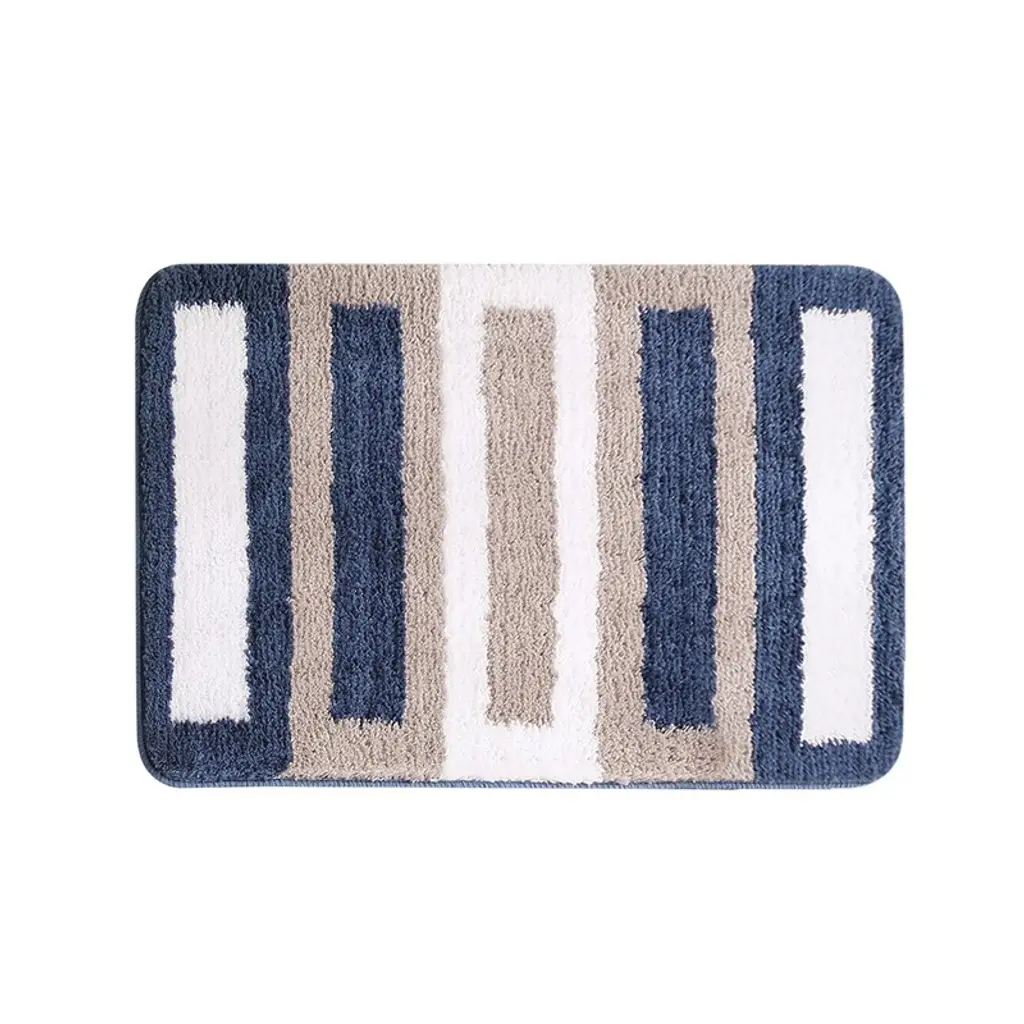 Upgrade your home decor with the Zarkea Pet-Friendly Microfiber Striped Area Rug. This rug combines style and practicality,featuring a modern striped pattern in navy, beige, and white that effortlessly complements various spaces, from bathrooms to pet areas. Crafted from ultra-soft microfiber,it offers a cozy surface for your feet and a comfortable spot for your pets to lounge. Designed with pet owners in mind, it's pet-proof. The durable microfiber resists scratches from playful paws and deters chewing, standing up to daily pet-related activities. Cleaning is a breeze-it's fully washable, so you can easily remove pet hair, dirt, and stains in the washing machine. The quick-drying feature prevents mildew buildup, keeping the rug fresh. Plus, the anti-slip backing ensures it stays securely in place on different floor surfaces, adding safety for you and your pets. With two convenient sizes, 20" x 32" and 24" x 35",you can find the perfect fit for your bathroom, entryway, or any space in need of a stylish and functional upgrade.