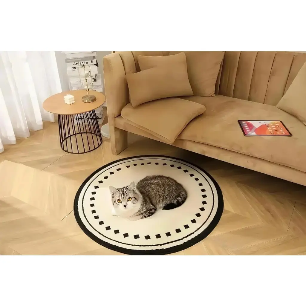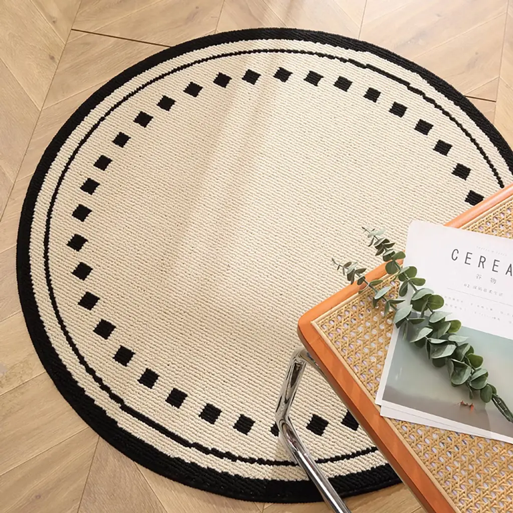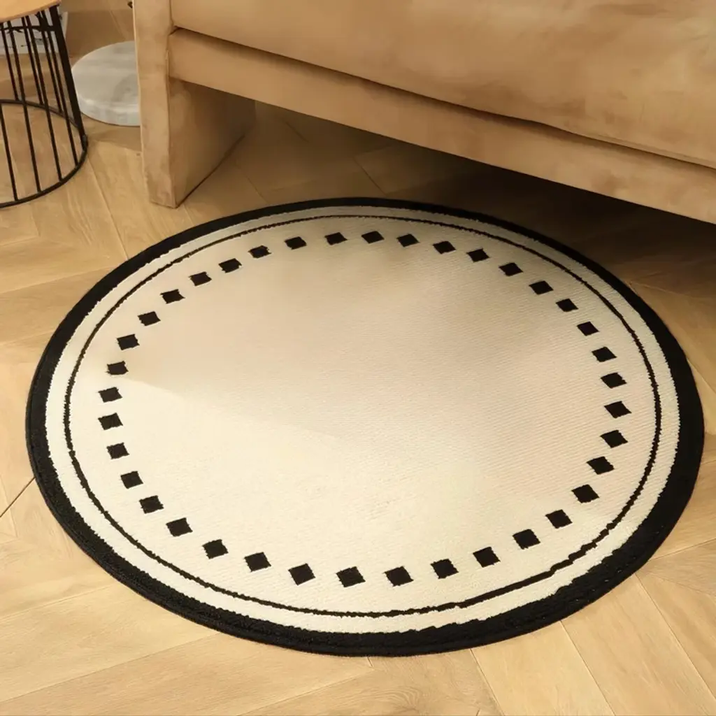 Zarkea® Minimalist Cream & Black 39" Round Rug, Washable,polypropylene,non-slip Rug For Indoor/outdoor Use