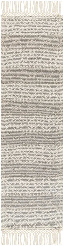 Collection: Zaza Colors: Ivory, Beige, Taupe Construction: Hand Woven Material: 60% Wool,40% Polyester Pile: No Pile Styles: Transitional,Traditional Made In: India Thickness: 0.51" Fringe Length: 4" Price Range: $$$$$ (Most Affordable)