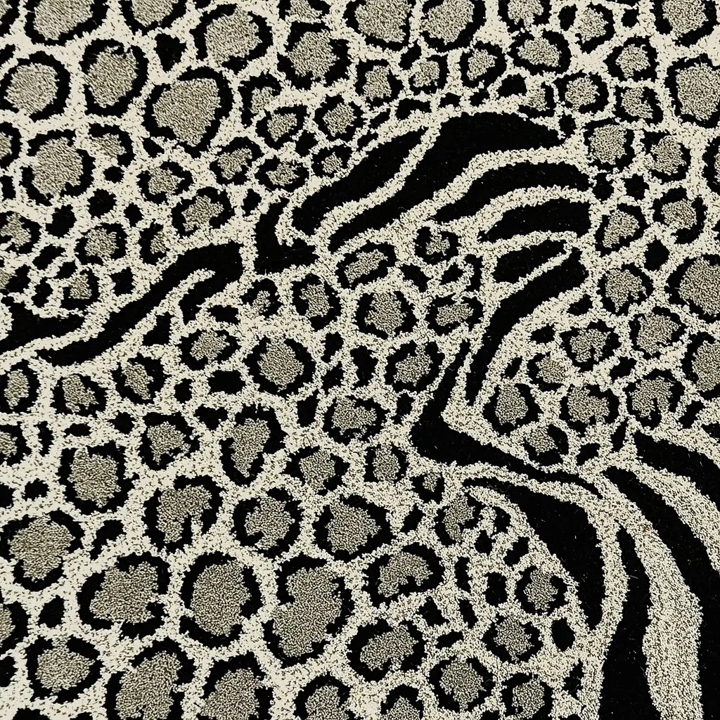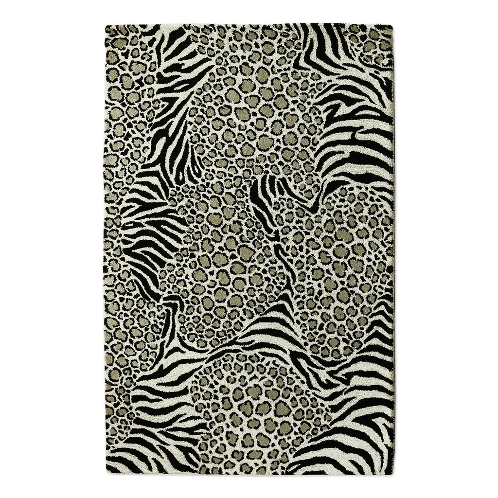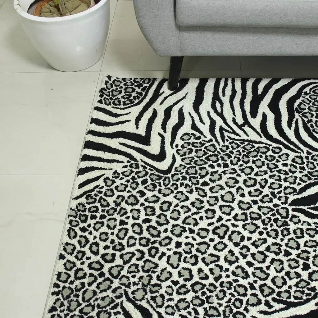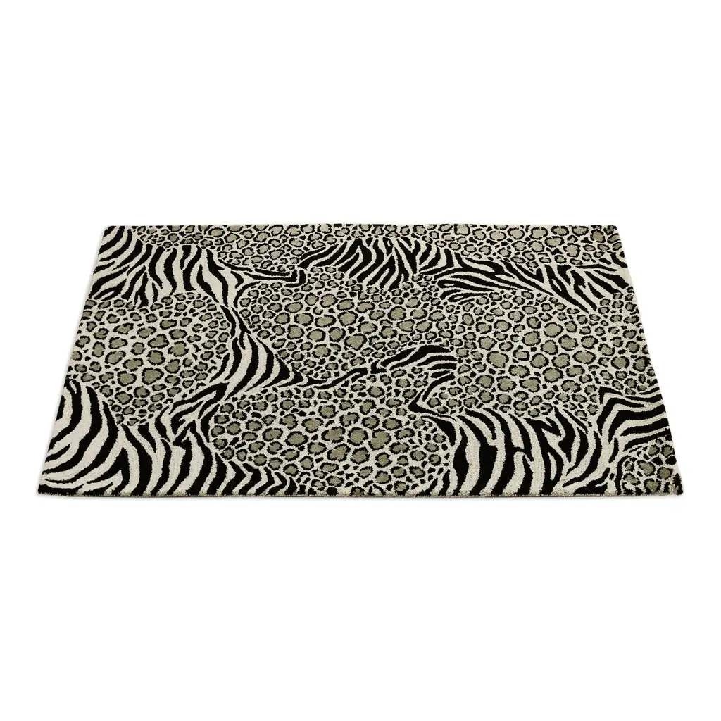 Zebra And Leopard Black And White Hand Tufted Wool Area Rug- Wild Harmony