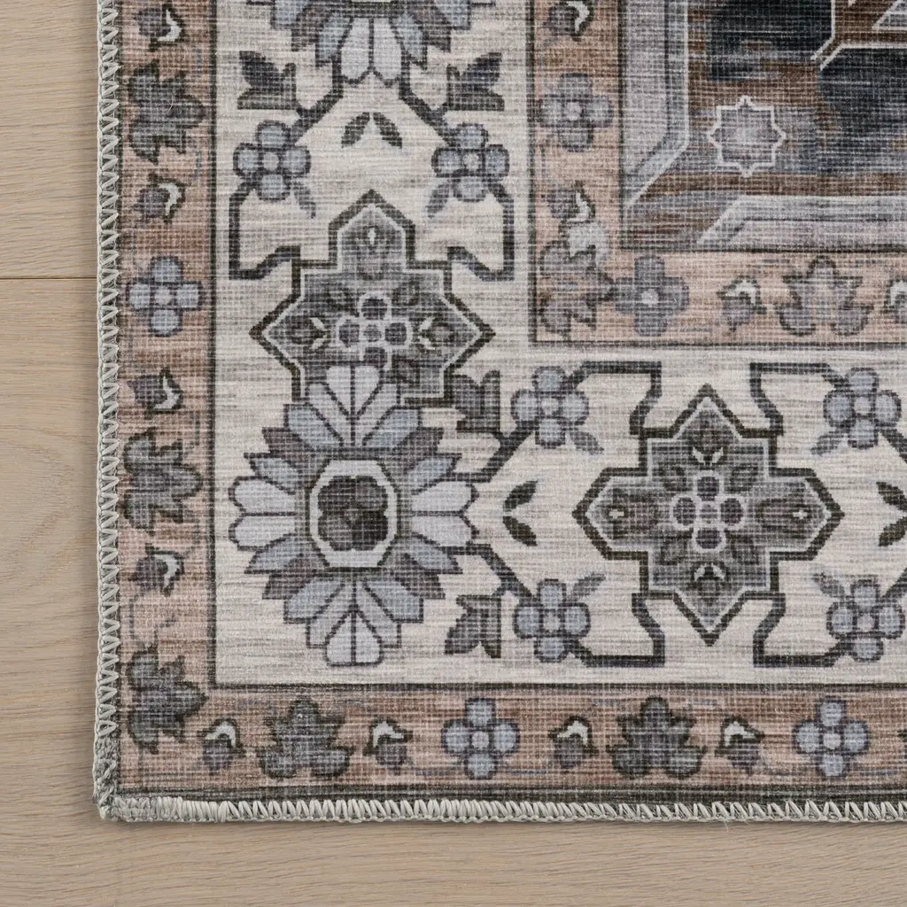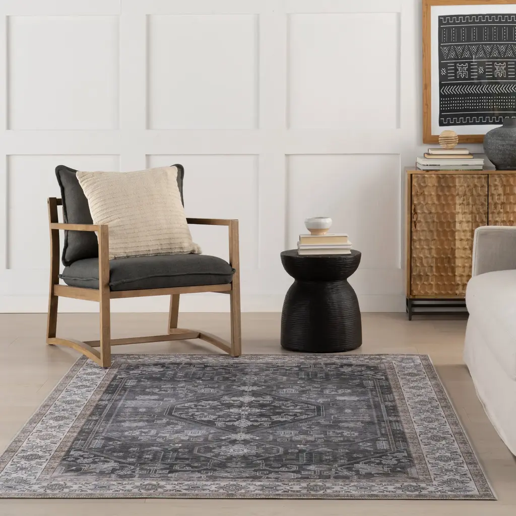 Zella Spill Proof Washable Vintage Rug | Charcoal - 4' X 6'