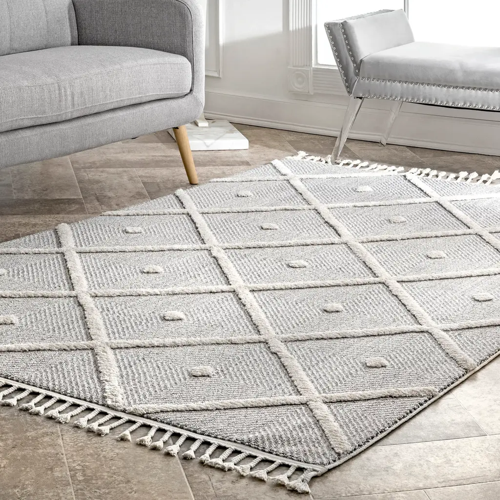 Zenful Pip Tiles Tassel Rug | Grey - 4' X 6'