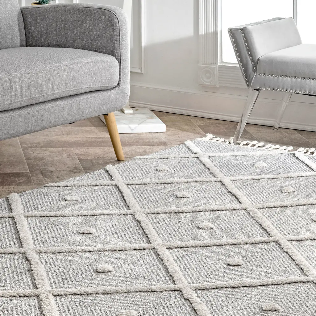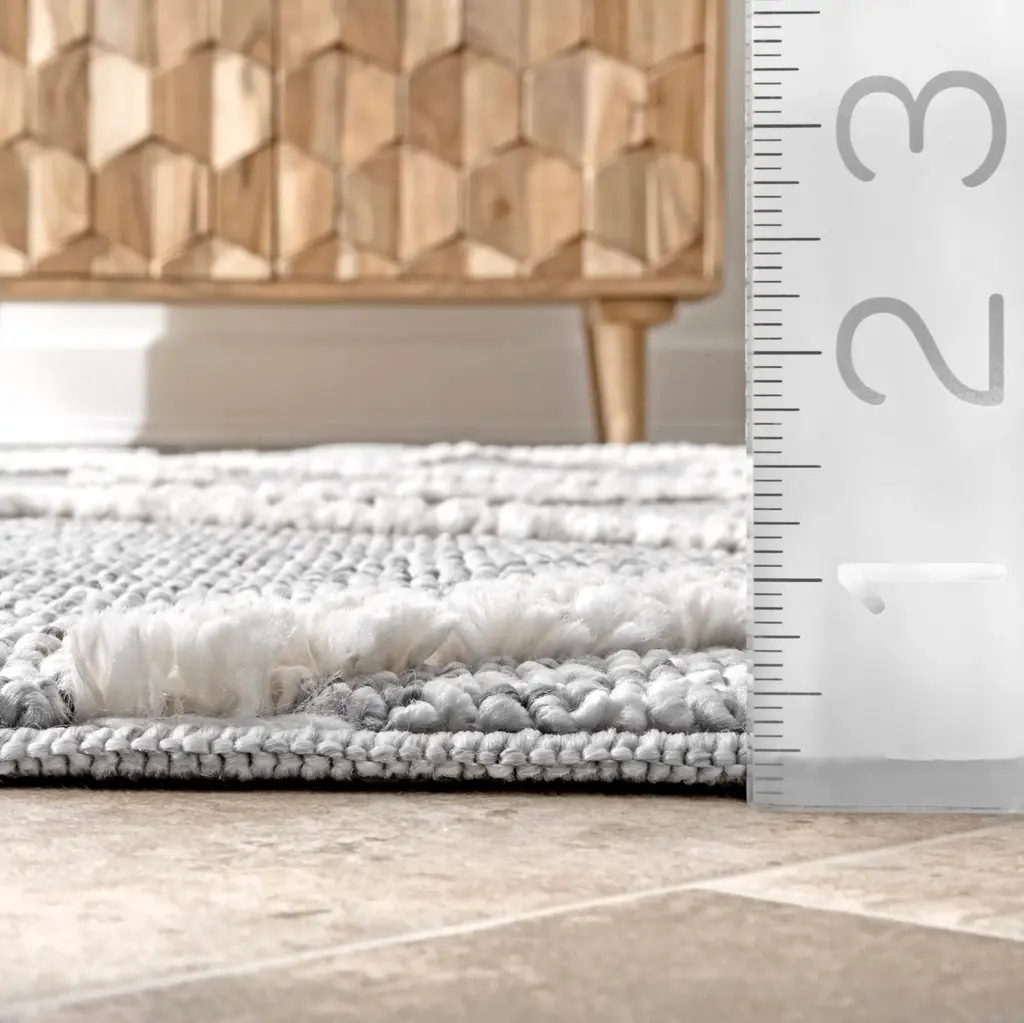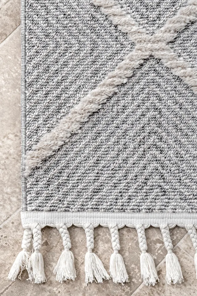 Zenful Pip Tiles Tassel Rug | Grey - 5' 3" X 7' 7"
