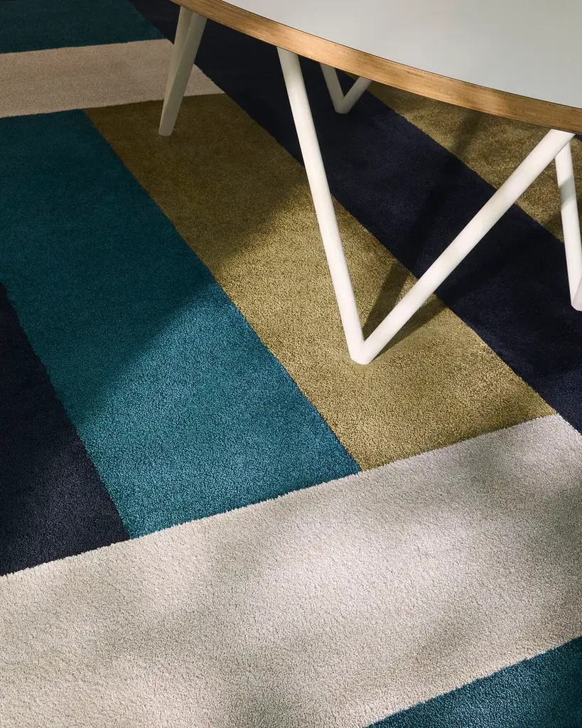 Zenith is an hand mande rug.Zenith highlights the beauty of geometry, showcasing an interplay of lines and shapes that merge into a harmonious blend of colours. You can choose and combine up to four different shades, each carefully selected to create sophisticated and elegant colour combinations.Customisable in size and colour.