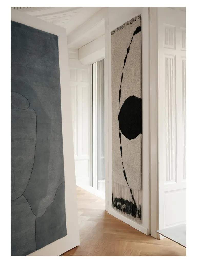 Zenith Moon, 'Axiom' collection by Linie DesignRectangular handmade rug. Material: Wool Hand knotted rugDimensions: 80 cm x 250 cmAn artistic and visually alluring hand-knotted rug from Linie Design. Featuring an abstract arched line with a bold circular form, Zenith Moon offers a bold expression that stands strong in its own presence. Knotted in a soft New Zealand wool boucle, the tactile quality of the surface interacts beautifully with the long, patterned fringes.Hand-knotted by Linie Design’s artisan weavers, designed by Urd Moll Gundermann.Today, Linie Design continues its collaboration with a number of Danish textile designers, led by Head of Design Urd Moll Gundermann. Our rug collections reflect the unique creative styles of each individual designer, reproduced by hand by skilled artisans in India. Whilst keeping traditional heritage values in high esteem and exceptional quality consistently high, the design team use innovative technology and new techniques to create new dimensions and push boundaries in design.