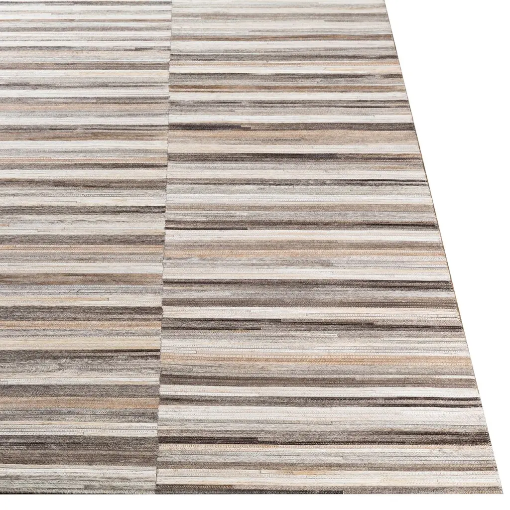 Slender strips of hair-on hide are artfully pieced together to give this handcrafted rug its rhythmic stripes, lush tonal variety, and sumptuous look and feel. A rug pad is recommended to prevent slipping and extend the life of the rug.