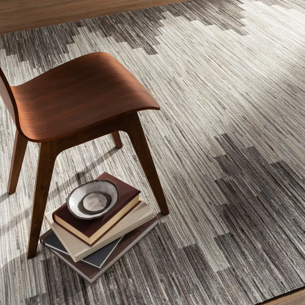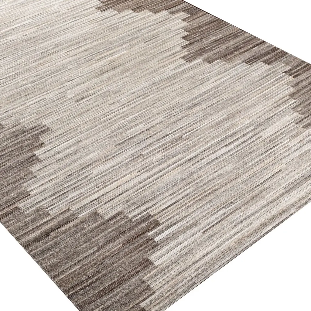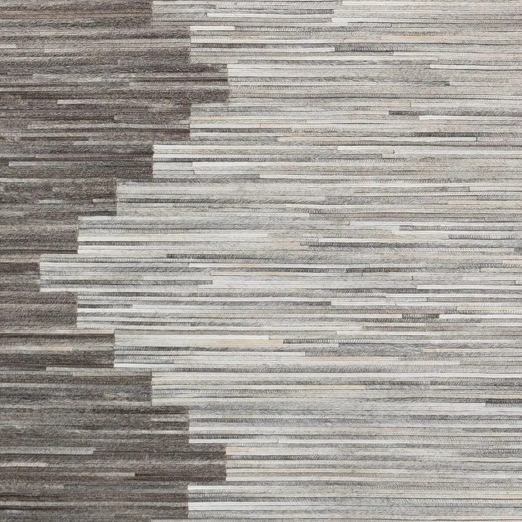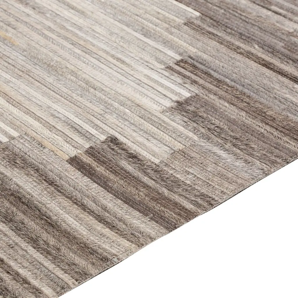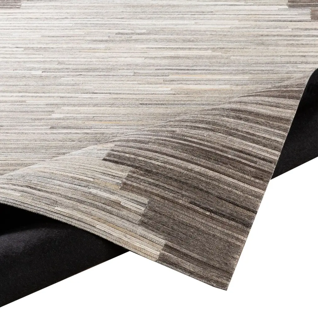 Slender strips of hair-on hide are artfully pieced together to give this handcrafted rug its bold pattern, lush tonal variety, and sumptuous look and feel. A rug pad is recommended to prevent slipping and extend the life of the rug.