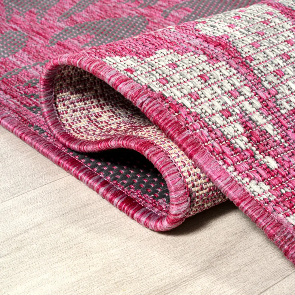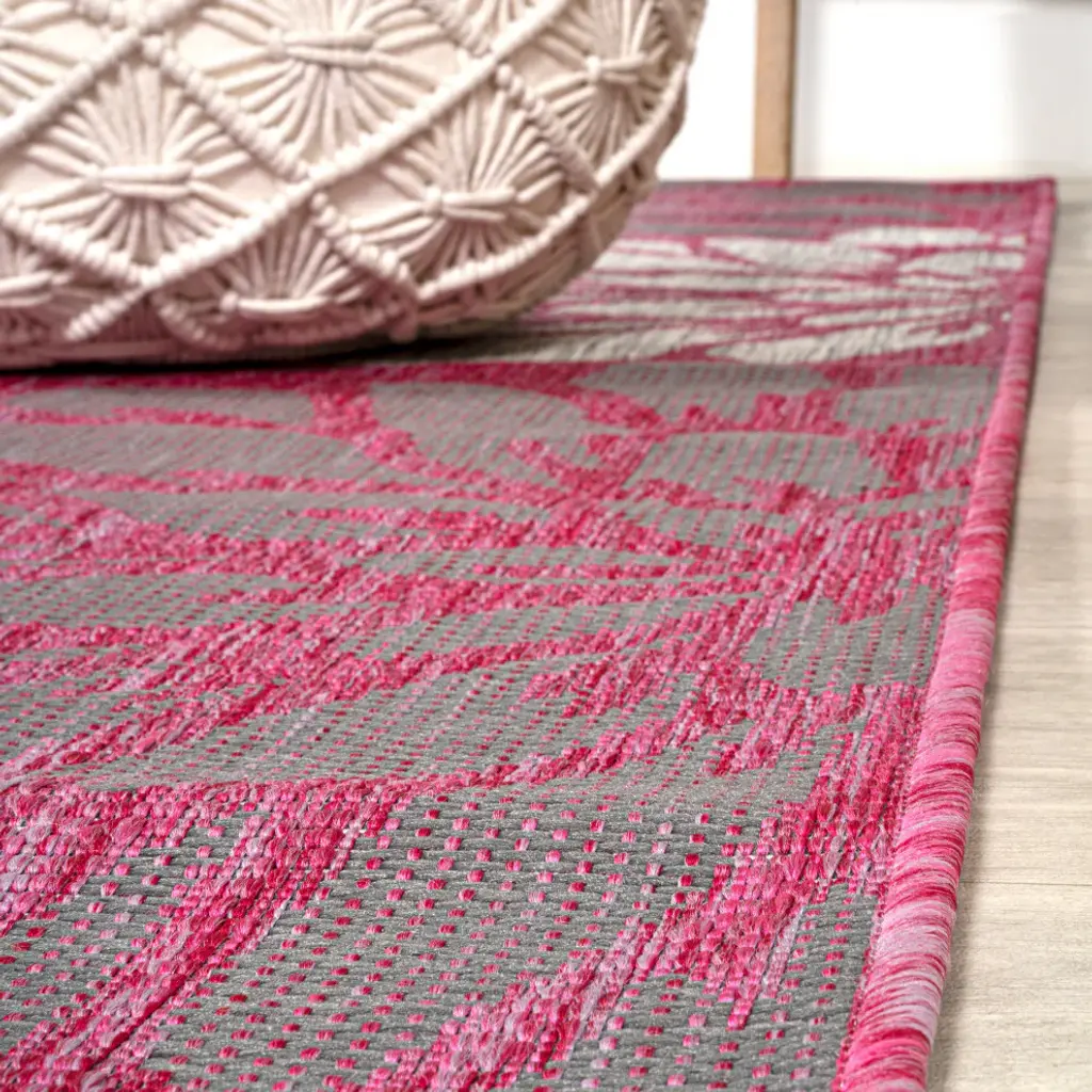 Add some graphic punch to your porch or patio with the bold blooms on our modern floral rug. The large-scale pattern has a geometric effect in a simple palette of sage green, brown and beige. The flatweave design is great for high-traffic spaces indoors too.Features:• Water resistance with 0.19" pile• Soft gray and cream flowers on a fuchsia background• Flat-weave construction of 100% polypropylene• 100% Polypropylene• No backing, use of rug pad is recommended (sold separately)• Power Loomed in Turkey• Actual Dimension: 5 ft. 3 in. x 5 ft. 3 in. Round• Color: Fuchsia/Light Gray• Thickness measures: 0.19 in.• Available in multiple sizes and/or colorsRug Care:• Vacuum regularly and spot clean as needed; avoid direct and continuous exposure to sunlight; use brushless vacuum; remove spills immediately; if liquid, blot with clean, undyed cloth by pressing firmly around the spill to absorb as much as possible; for hard to remove stains, professional rug cleaning is recommended; store in a dry, well ventilated area and rotate for consistent wear• Packing and shipping may cause temporary creases in rugs, which will flatten out after a week on the floor; to expedite the process, try back-rolling your rug before laying it down, and then allow ample time for the remaining creases to relax• Please Note: Due to differences in monitors, some rug colors may vary slightly. Lengths and widths may vary from the published dimensions. Patterns may vary slightly according to shape and size selected.About us:Style your floors with JONATHAN Y. By combining fine craftsmanship and design, this New York creative studio is bringing fashion to your floors. The collection mixes sustainable organic materials, vibrant colors and trend worthy styles to create JONATHAN Y''s distinctive catalog of rugs.